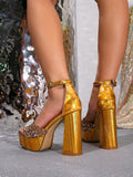 Elevate Your Style: Stunning Golden High Heel Platform Sandals