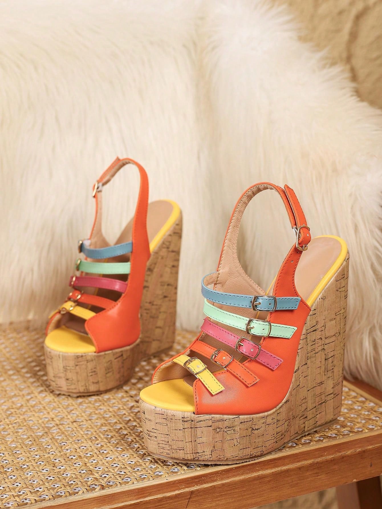 Elevate Your Style with Buckle Decoration Wood Grain Sandals