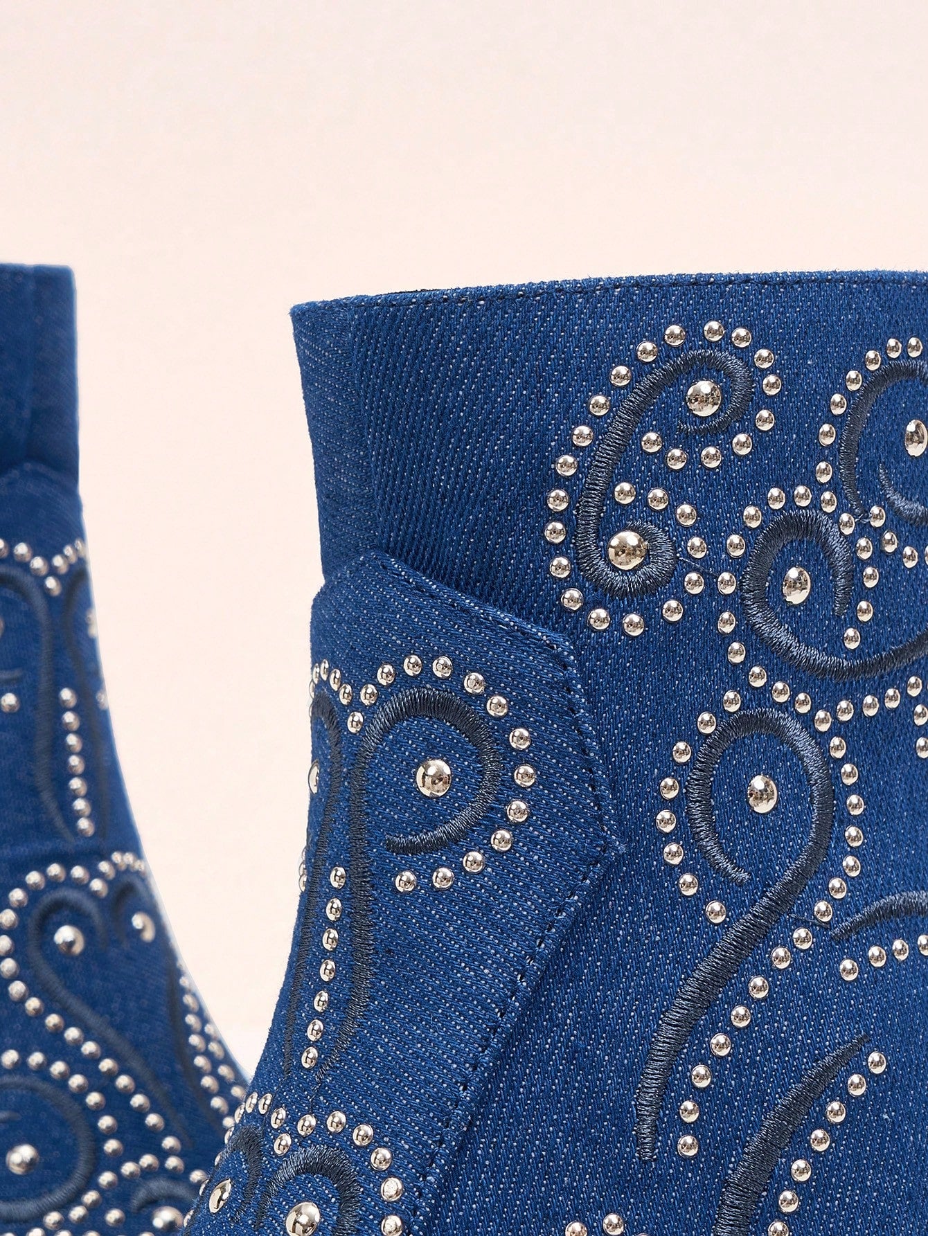 Embroidered Rhinestone Blue Short Boots: A Chic and Comfortable Style Staple