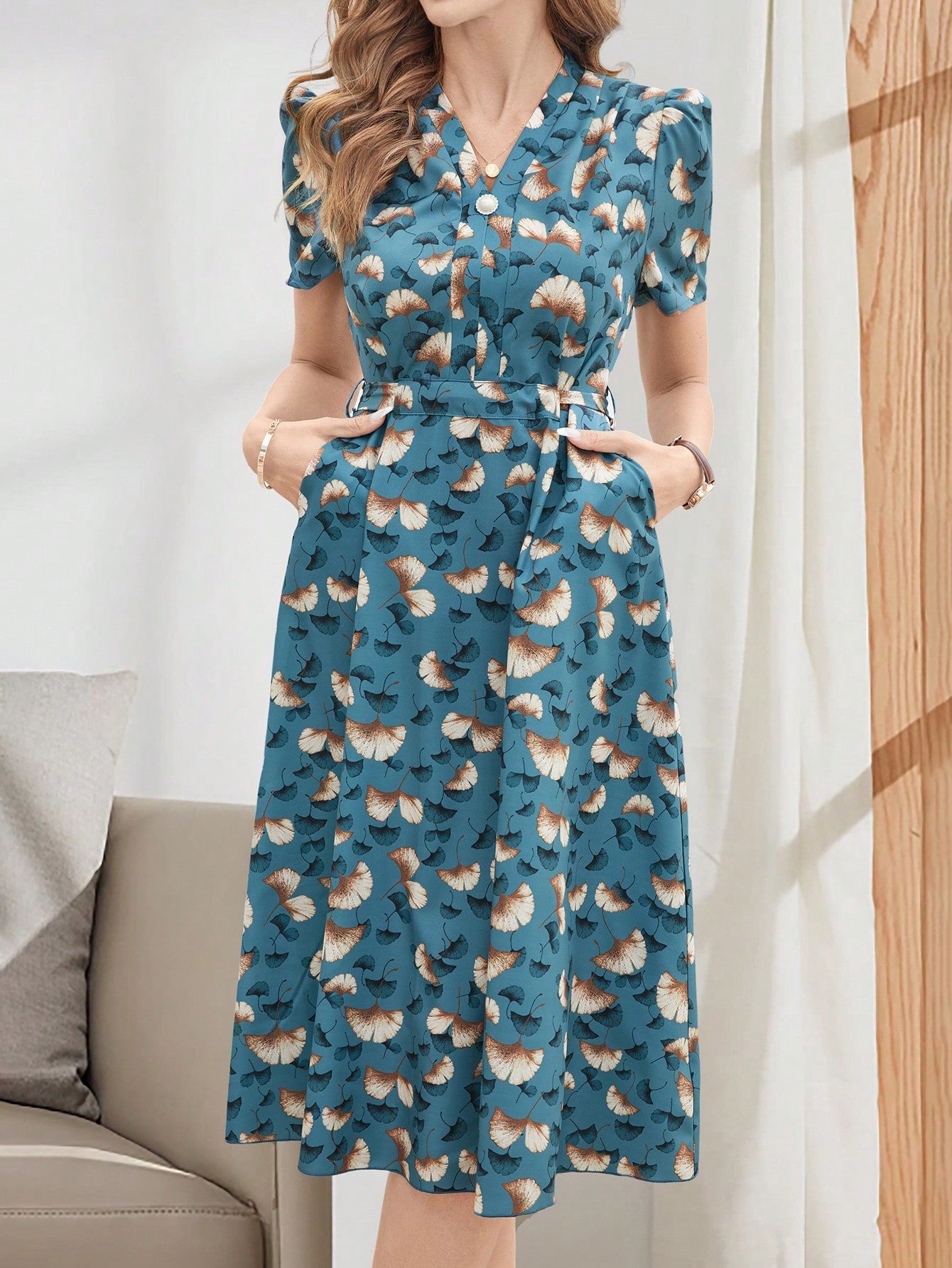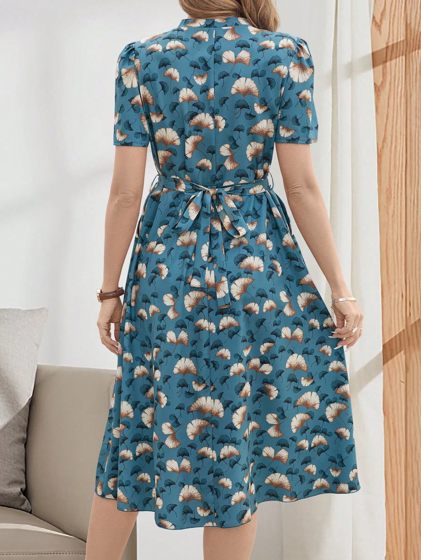 Elevate your style with Emery Rose's Elegant V-Neck Tie-Up Casual Mid-Length Dress. The chic v-neckline and playful tie-up detail will have you turning heads wherever you go. Perfect for any occasion, this dress offers both style and comfort. Be the envy of every room you enter!