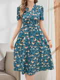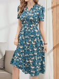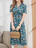 Emery Rose Women’s Elegant V-Neck Tie-Up Casual Mid-Length Dress
