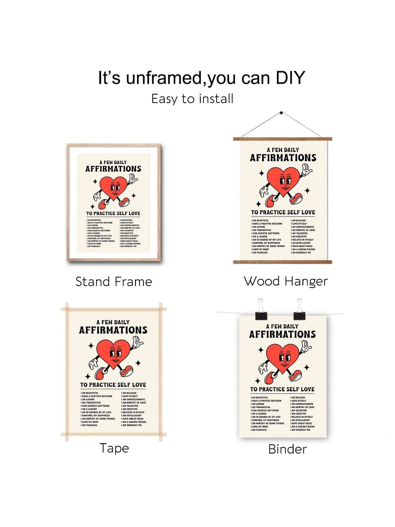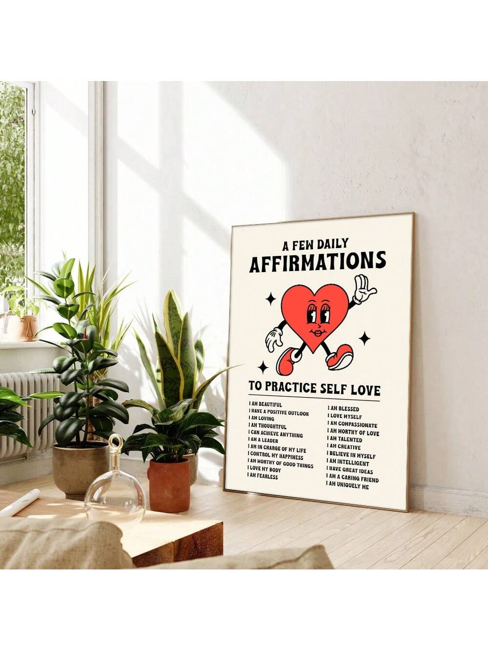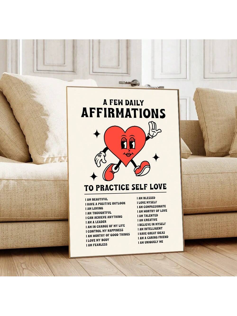Boost your self-esteem and cultivate positive self-love with our Empowering Daily Affirmations Retro Canvas Print. Featuring inspiring quotes on a vintage-style canvas, it serves as a daily reminder to stay confident and motivated. Invest in your well-being and decorate your space with this empowering piece.