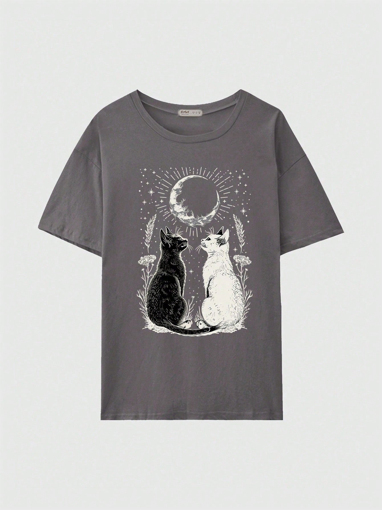 Enchanted Nights: Goth Fairy Cat & Moon Graphic Tee