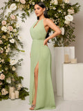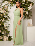 Enchanting Belle Keyhole Neck Split Thigh Bridesmaid Dress in Mint Green