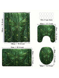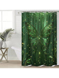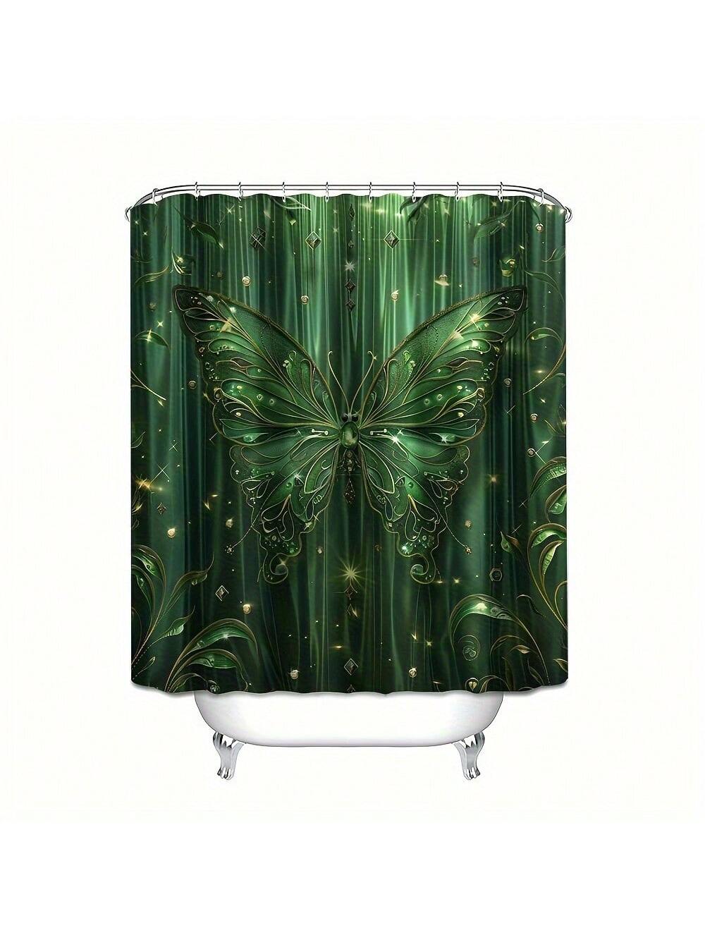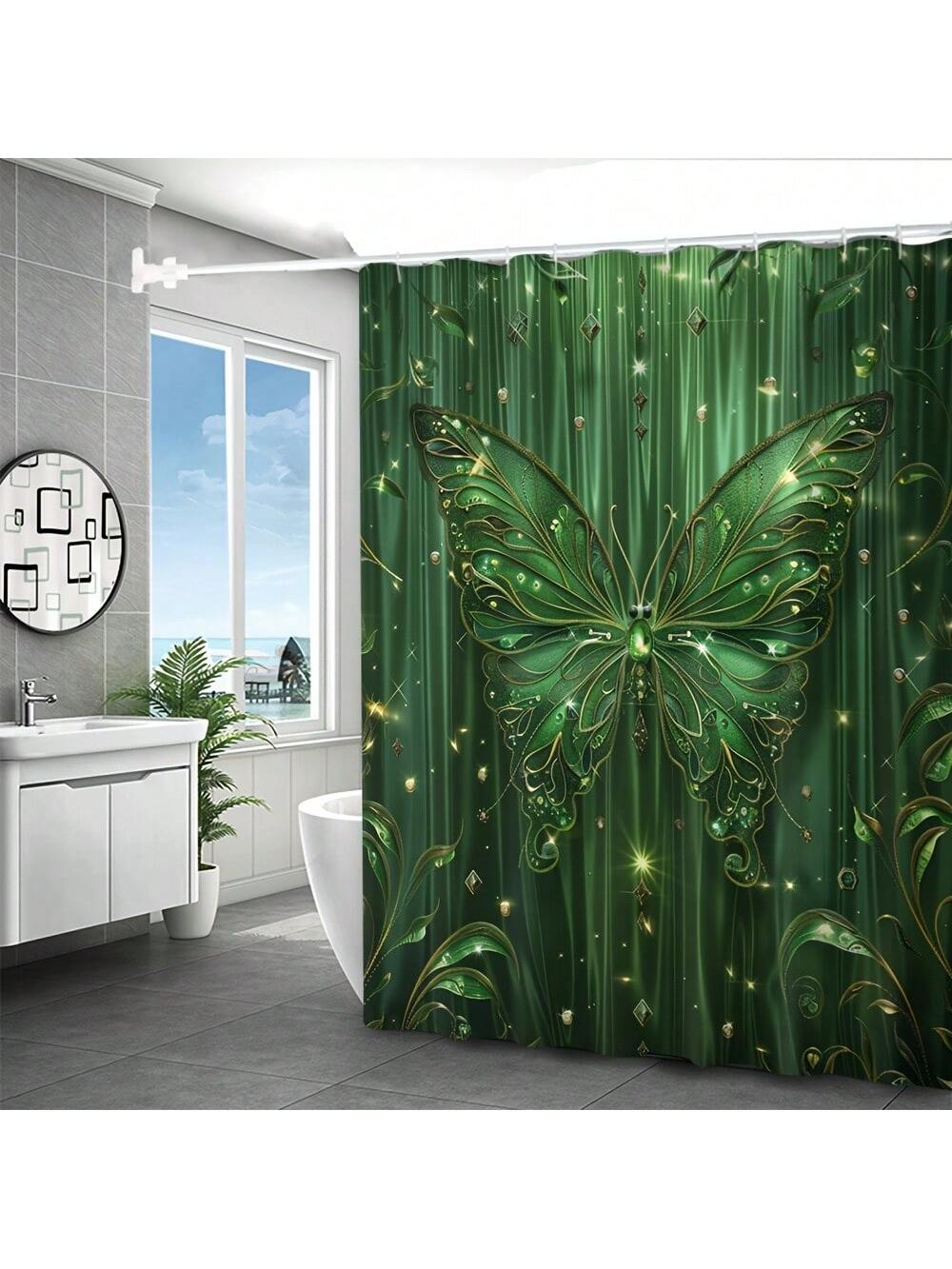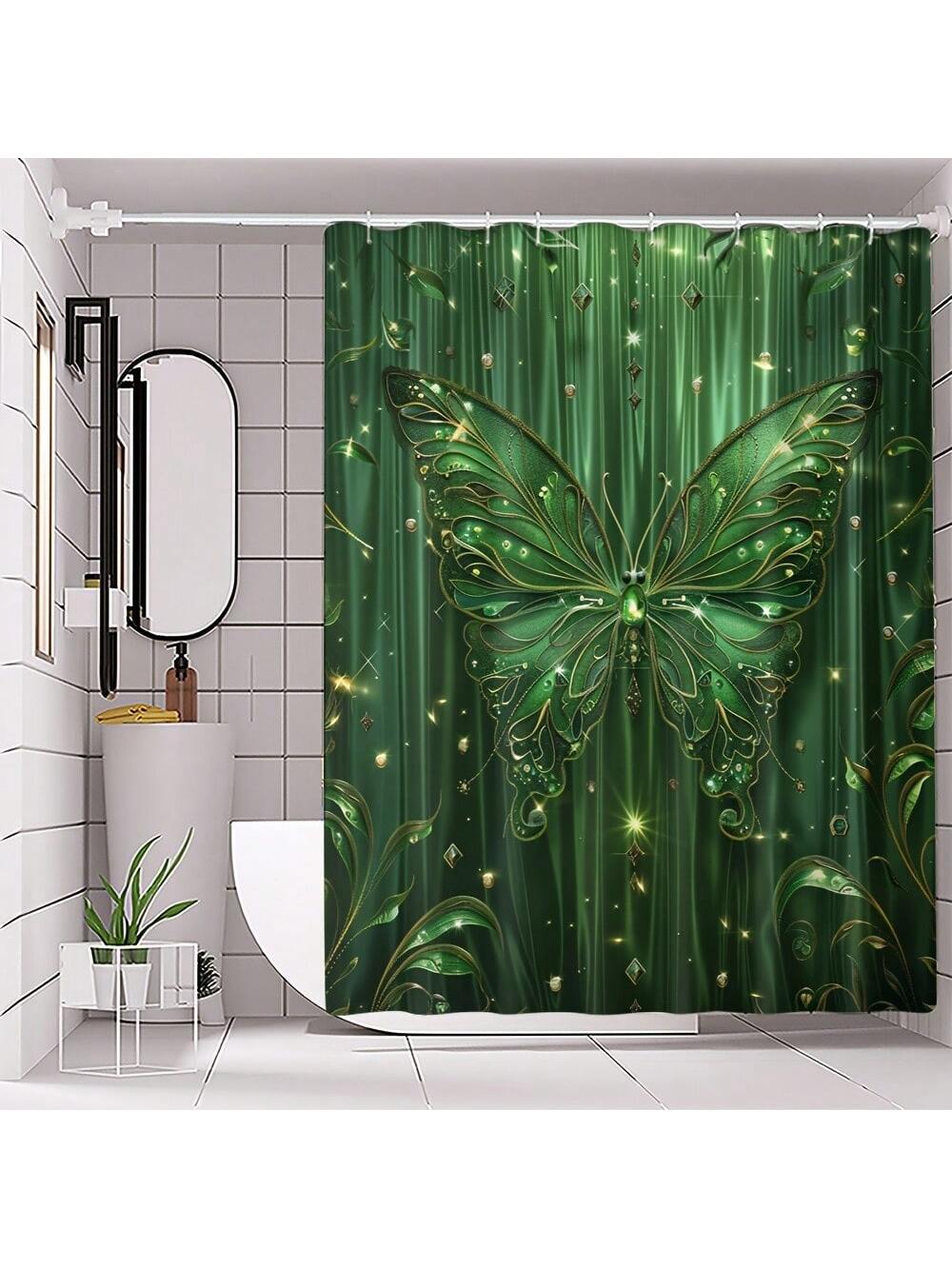 Enchanting Green Butterfly 4-Piece Waterproof Shower Curtain Set – Transform Your Bathroom with Stunning 3D Digital Print