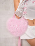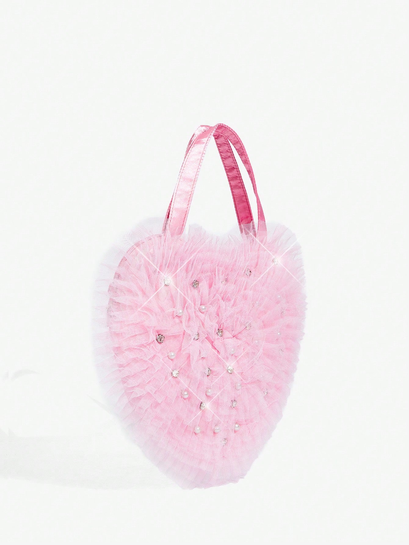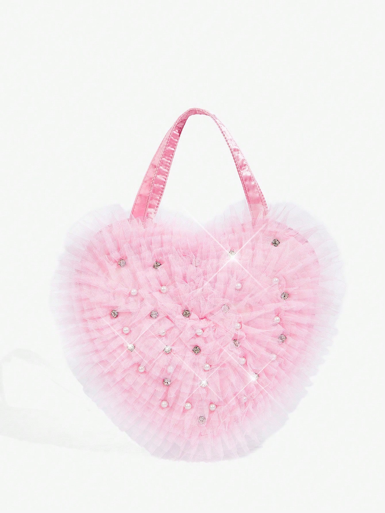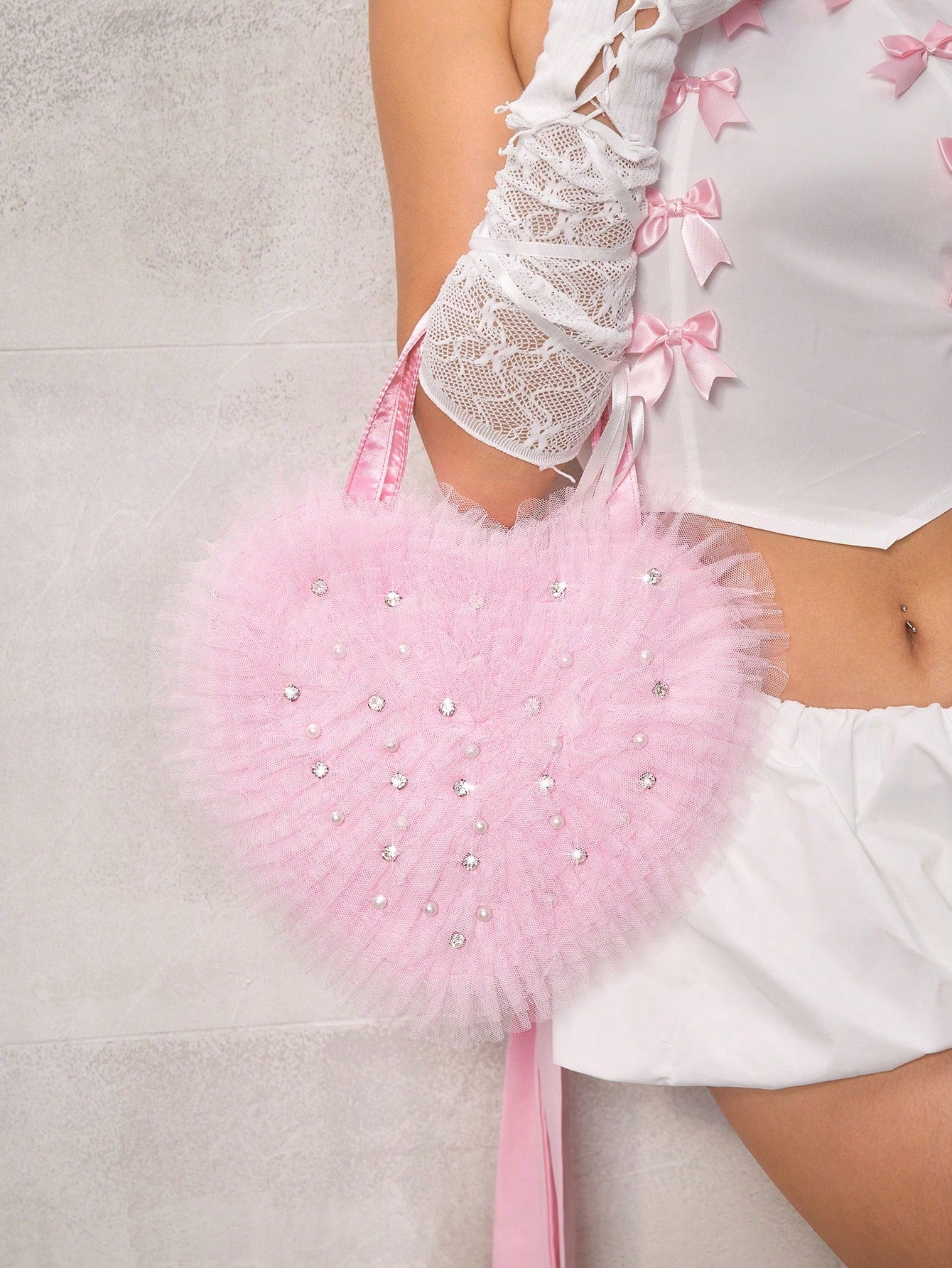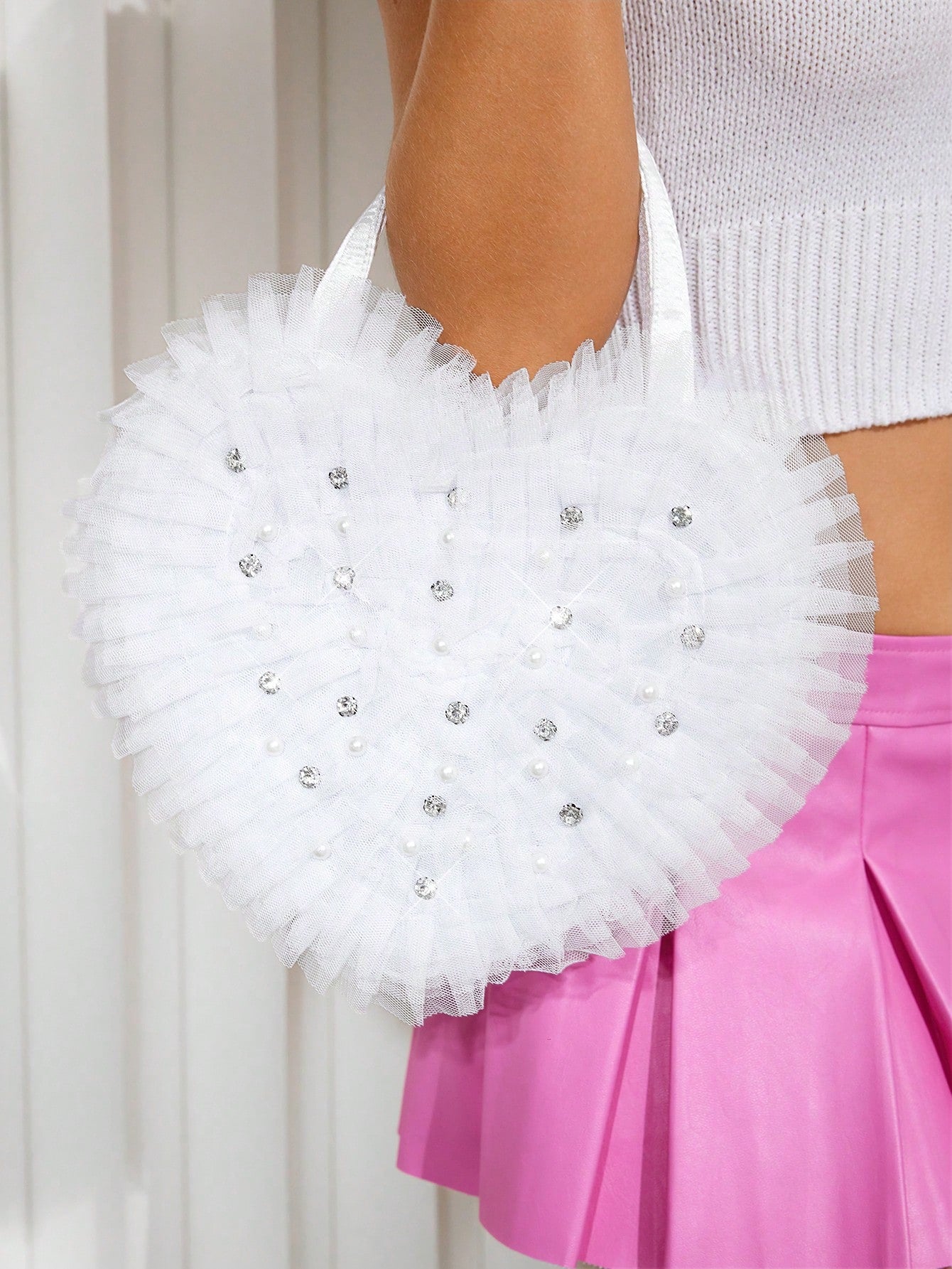 Enchanting Heart-Shaped Handbag with Diamond Pearl Decor