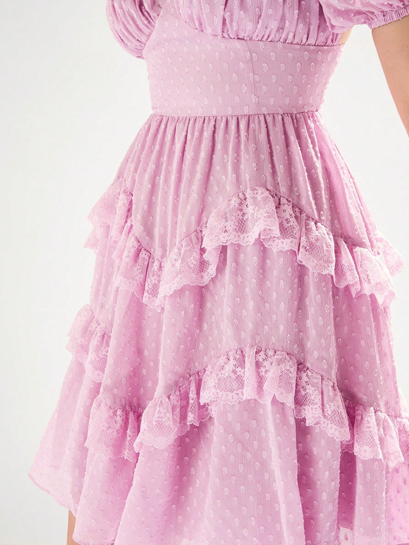 Details : Tiered Layer, Ruffle Hem, Ruched Bust