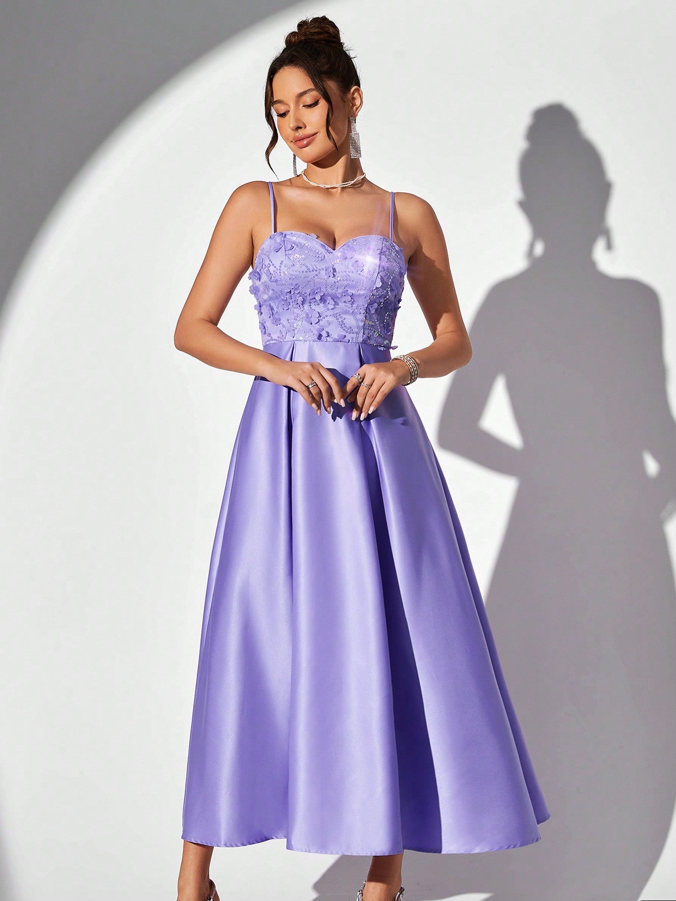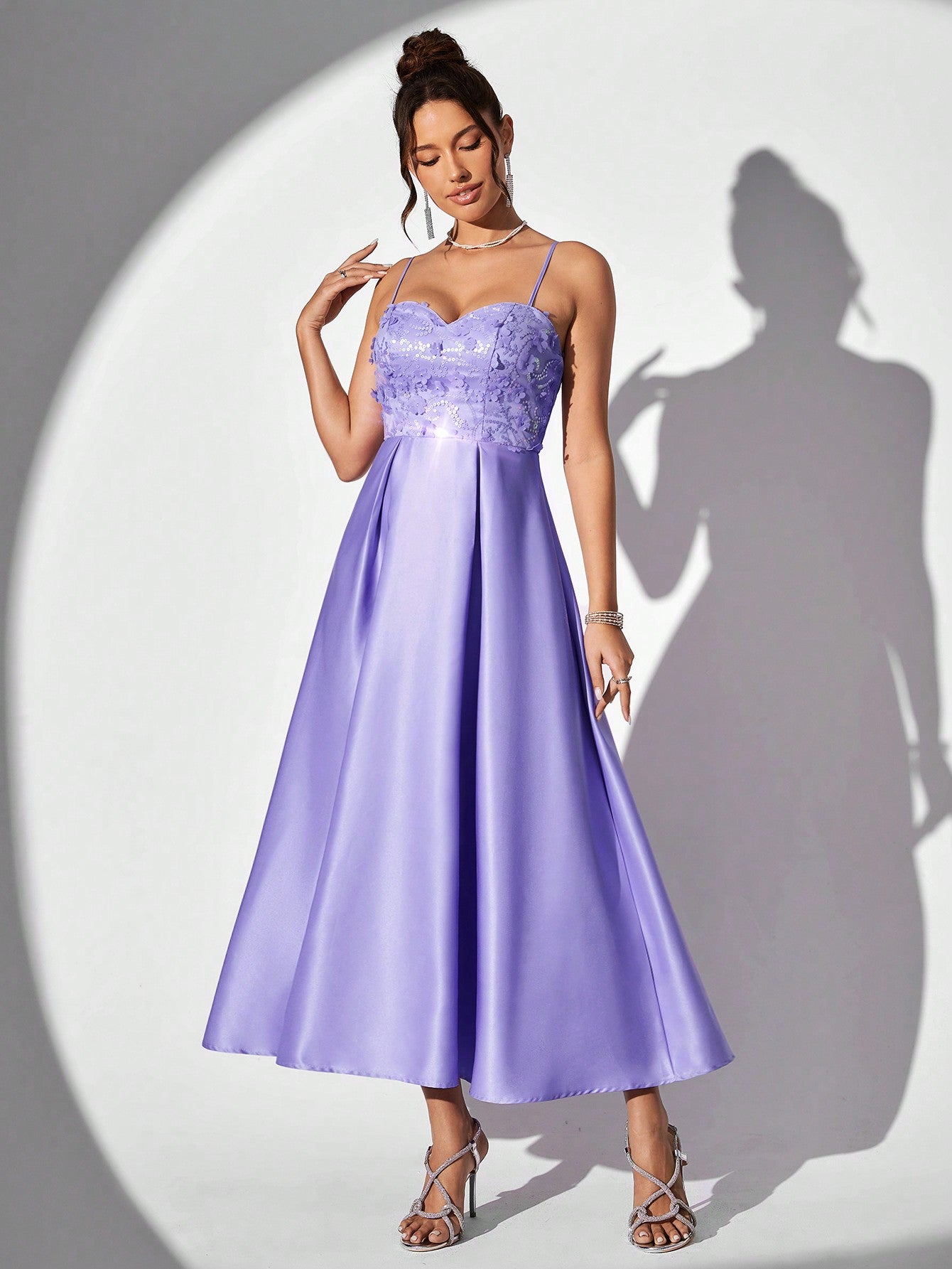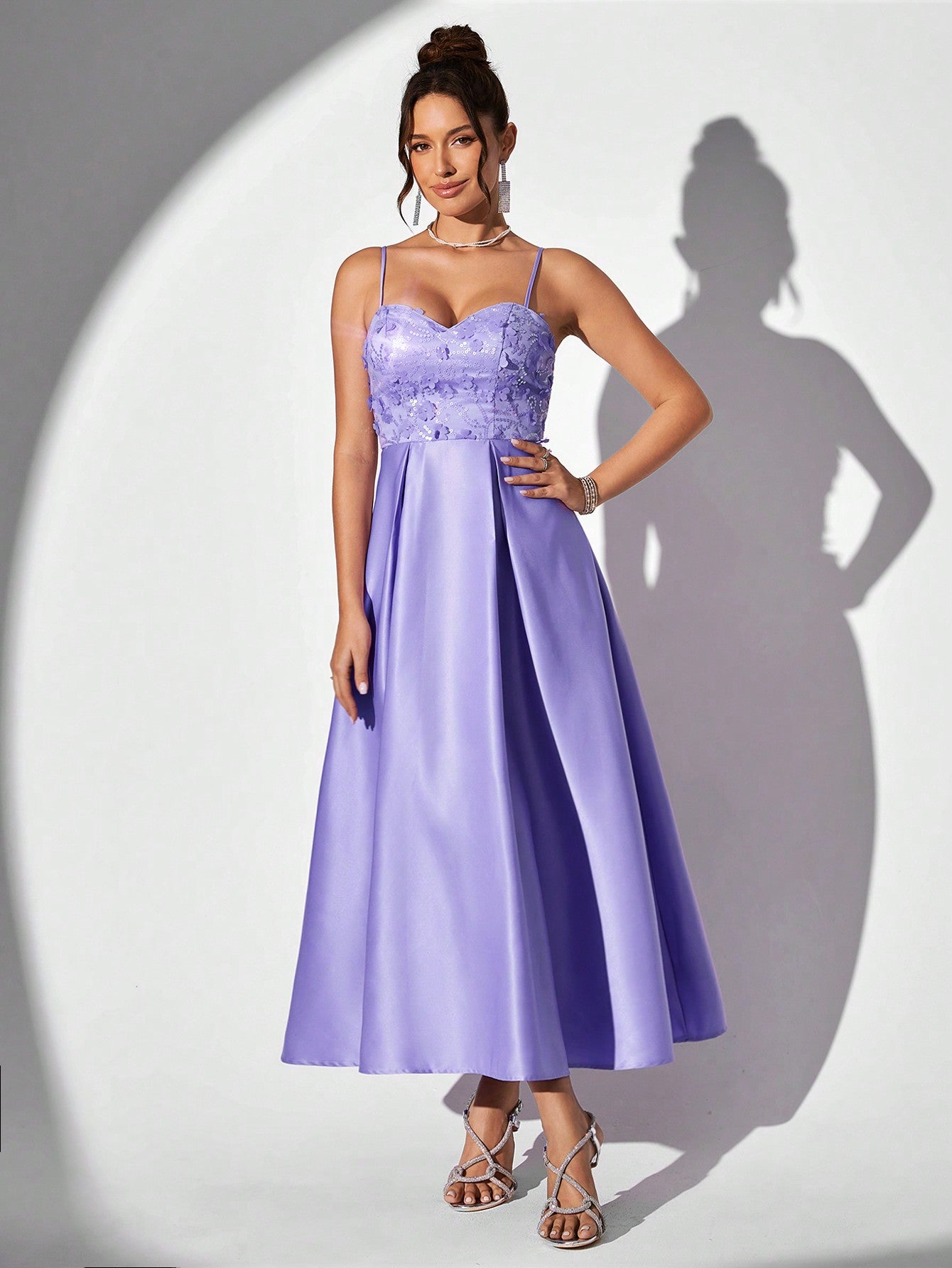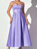 Enchanting Lavender Spaghetti Strap Evening Gown with Glittering Floral Accents