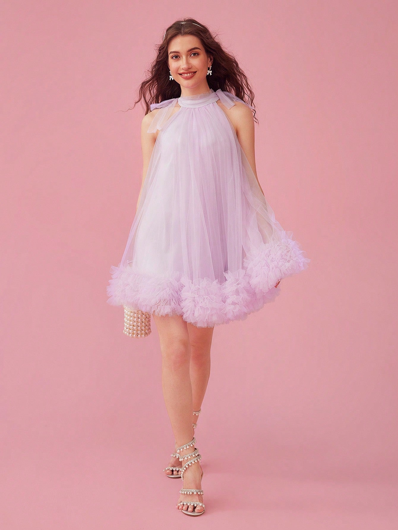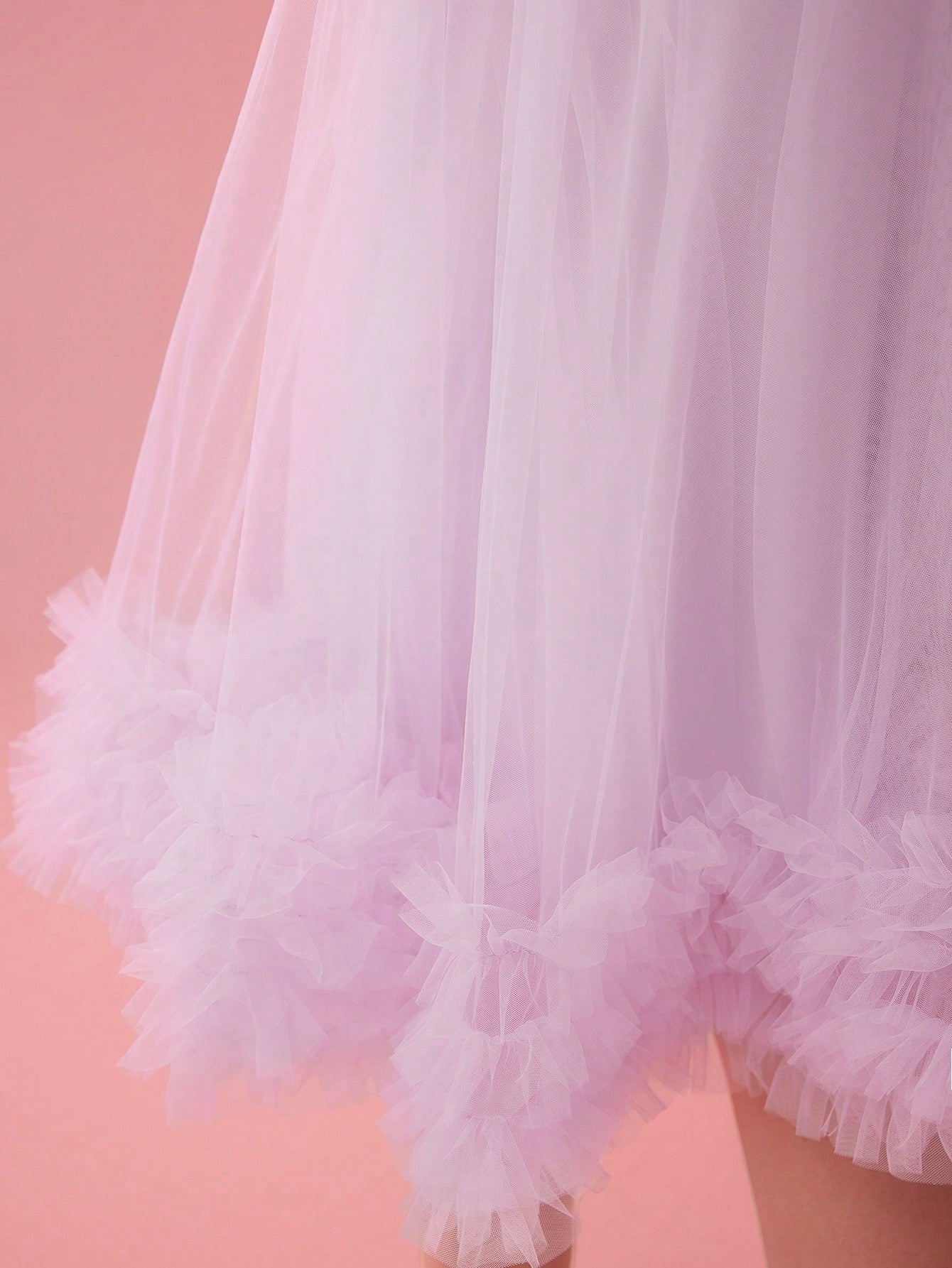 Enchanting Layered Ruffle Hem Tulle Dress for Women