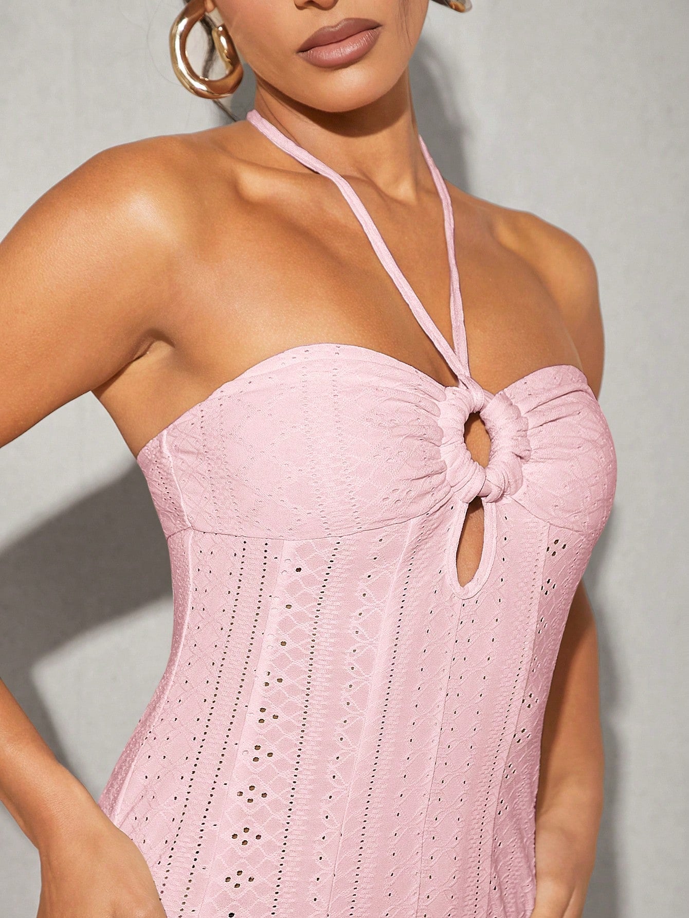 Enchanting Mermaid Hem O-Ring Dress with Chic Pointelle Detailing