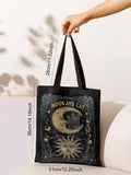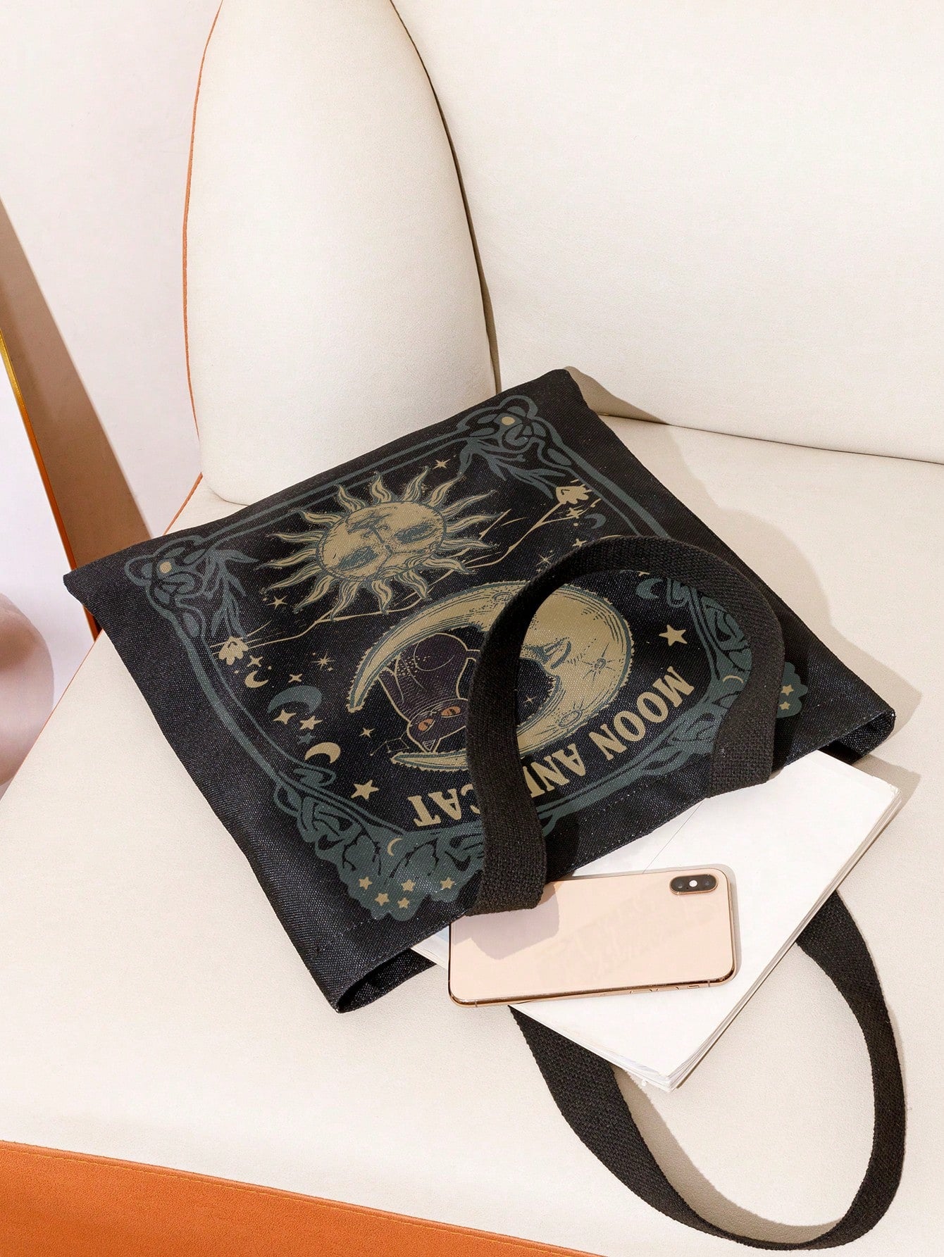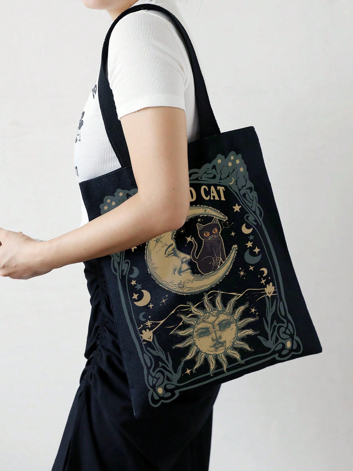 Enchanting Moon Cat Graphic Shopper Bag for Casual Fairycore Style