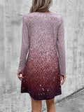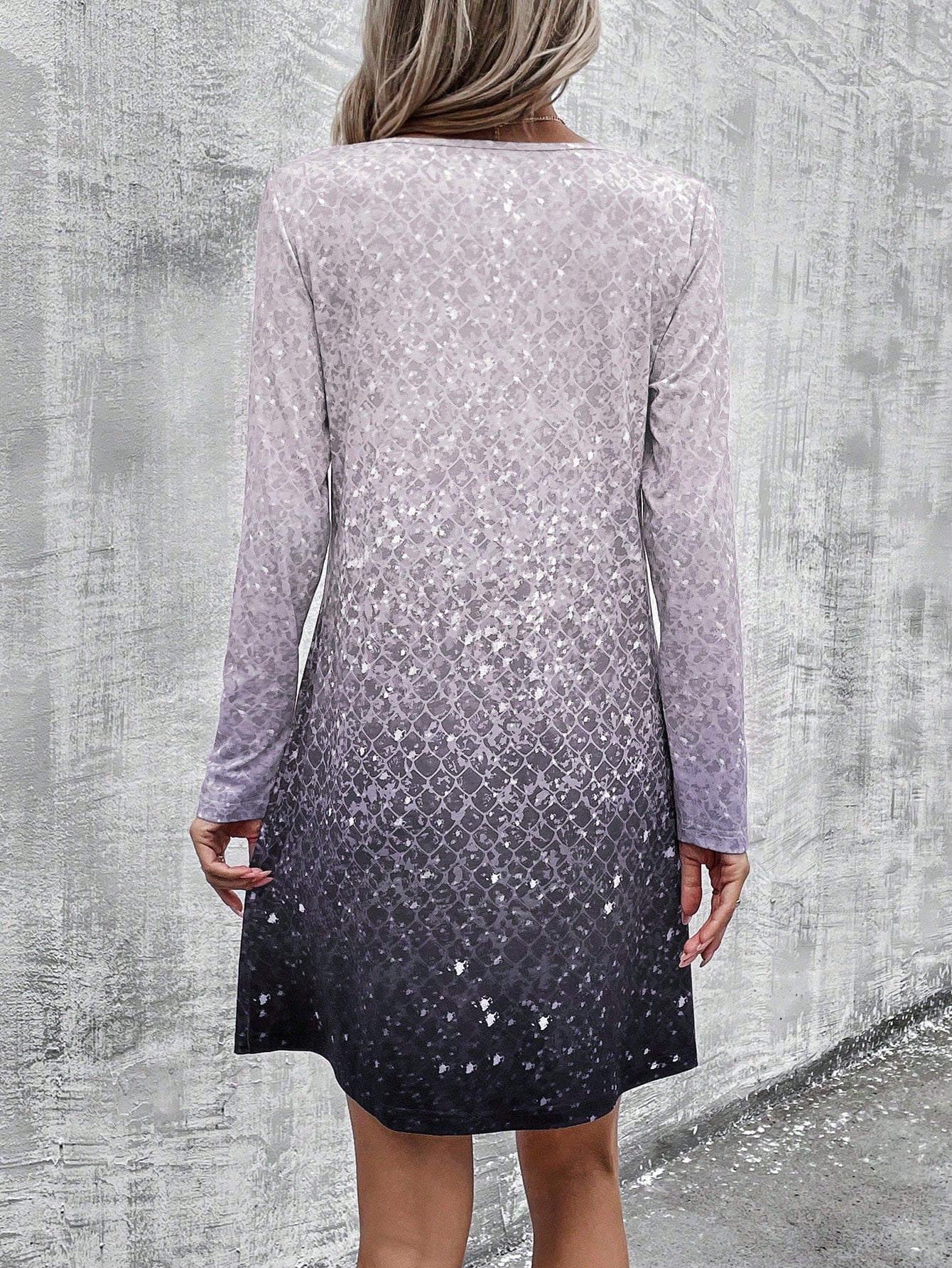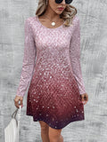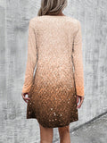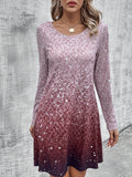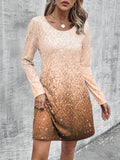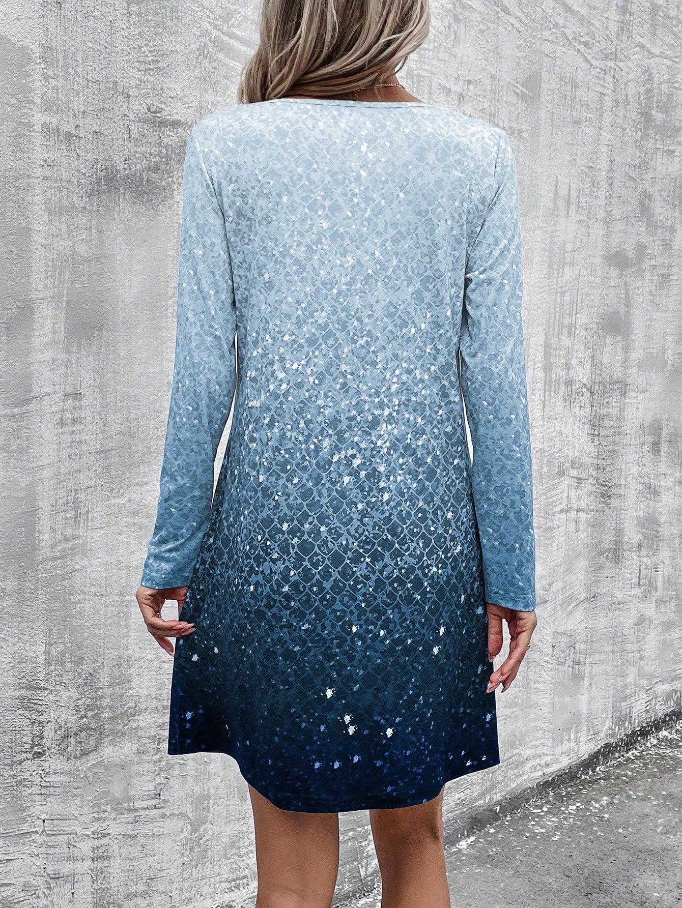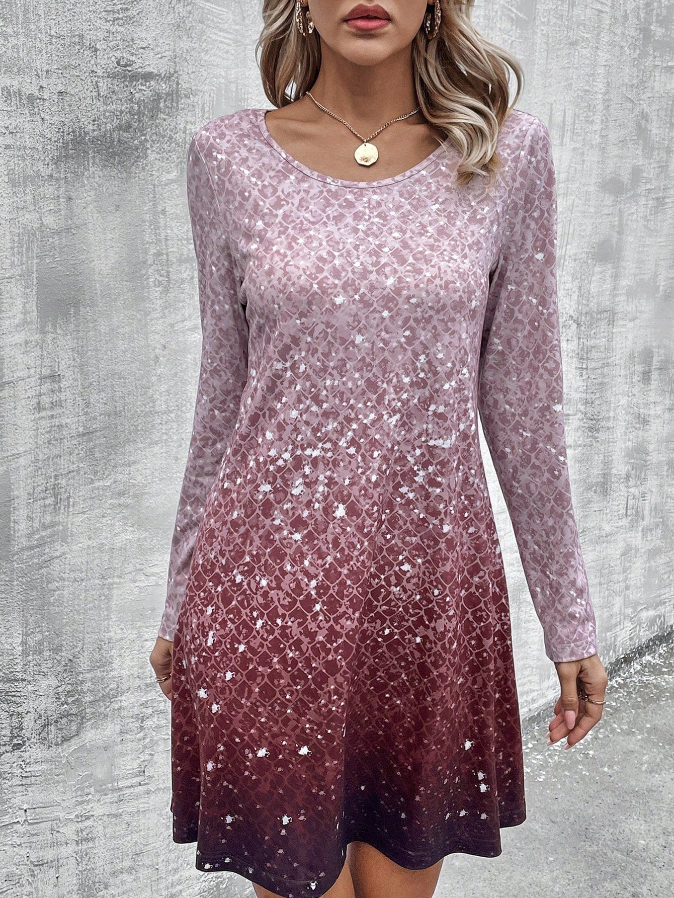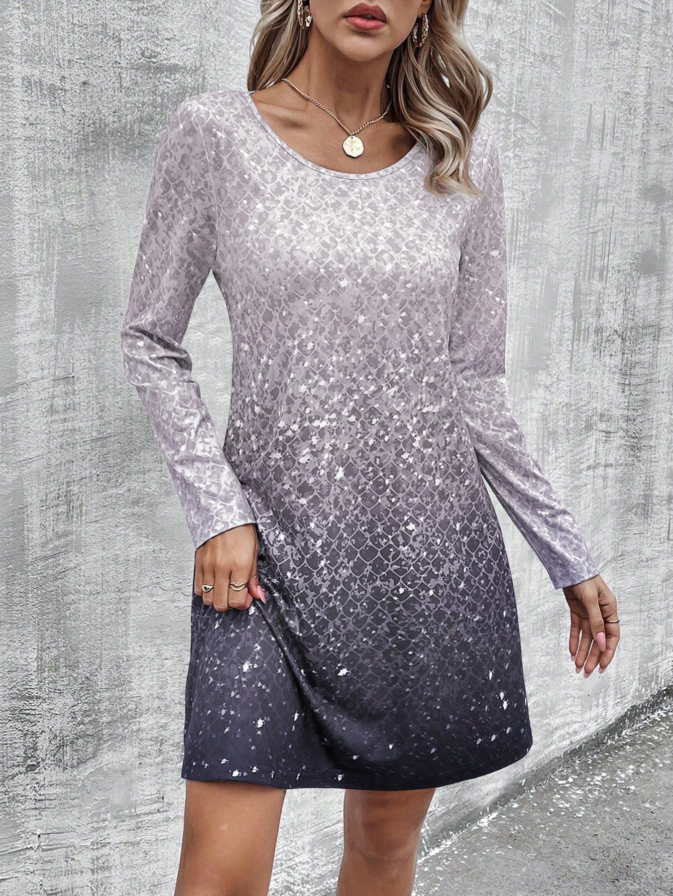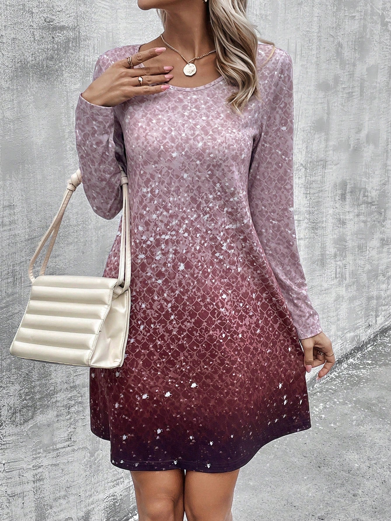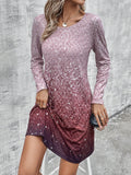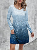 Enchanting Ombre: Round Neck Long Sleeve Dress