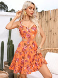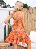 Enchanting V-Neck Lace Patchwork Cami Dress with Bowknot Back – Perfect for Romantic Holidays