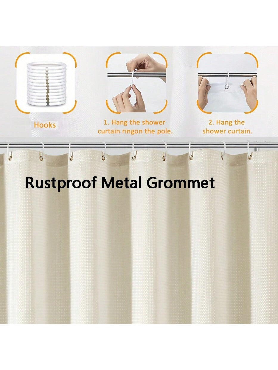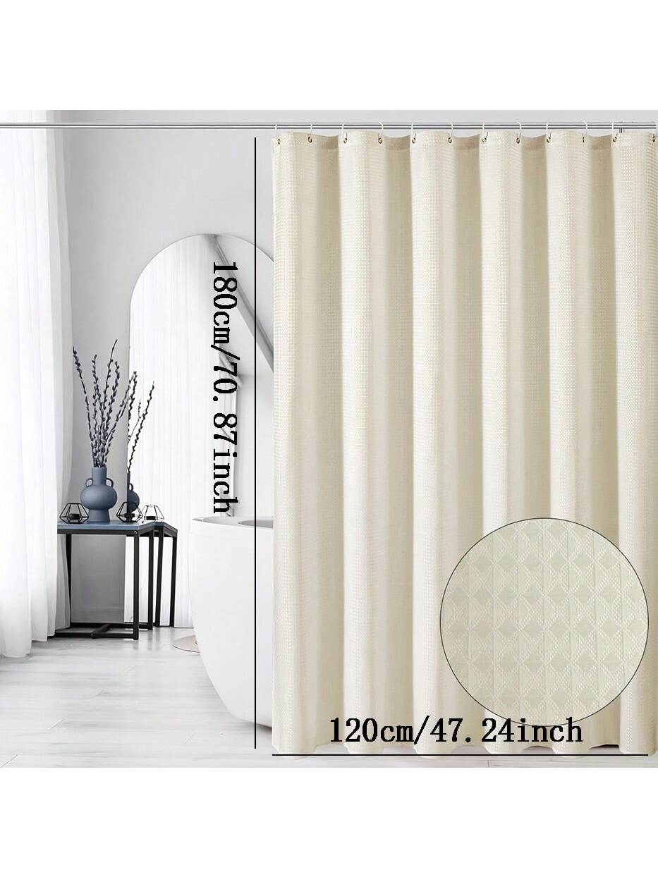 Enhanced Beige Waffle Shower Curtain - Waterproof & Wrinkle-Resistant with C-Shaped Hooks