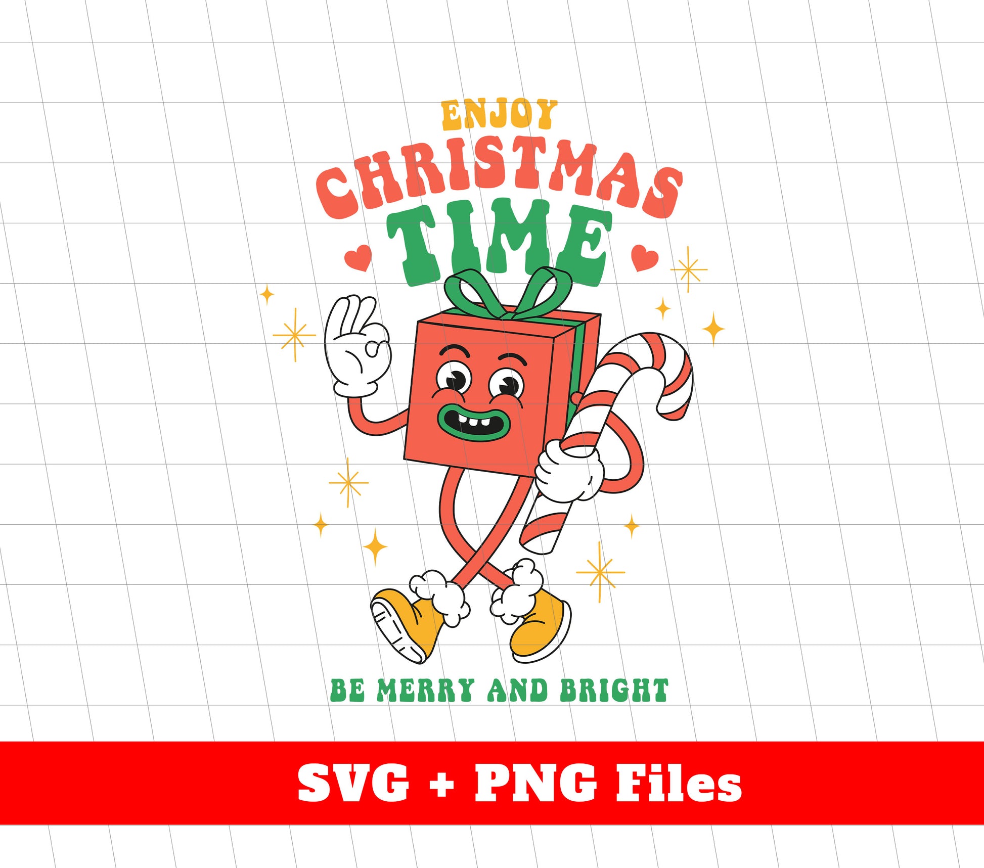 Enjoy Christmas Time, Be Merry And Bright, Groovy Gift, Digital Files, Png Sublimation