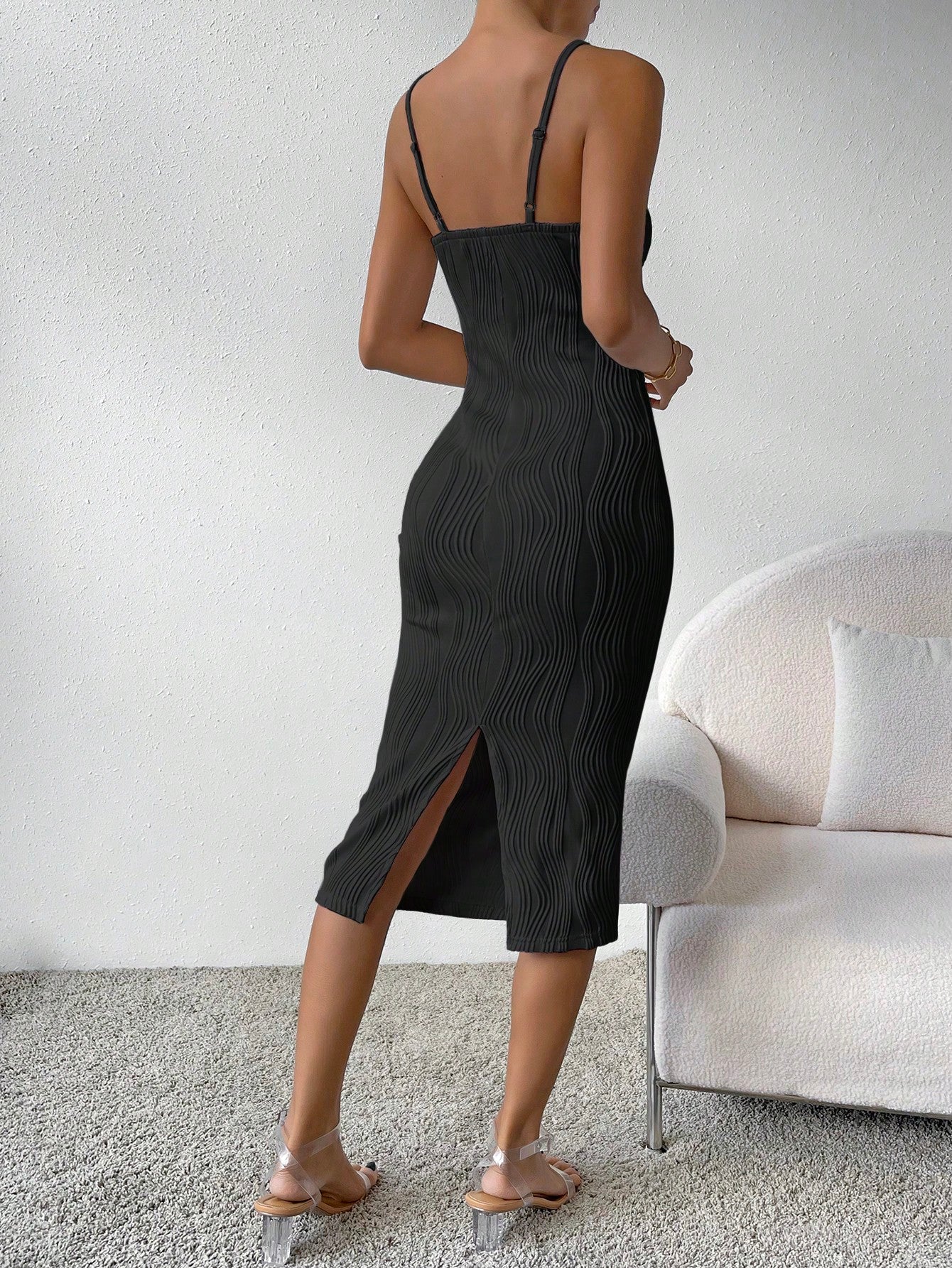 Essence of Elegance: Summer Solid Color Textured Slim Fit Cami Dress
