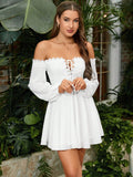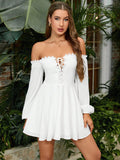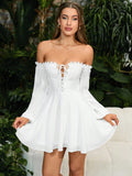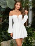 Ethereal Elegance: Lace-Spliced Off-Shoulder Dress with Lantern Sleeves