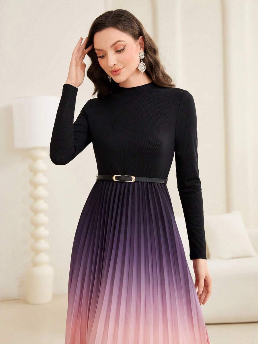 Ethereal Elegance: Women's Gradient Pleated Dress