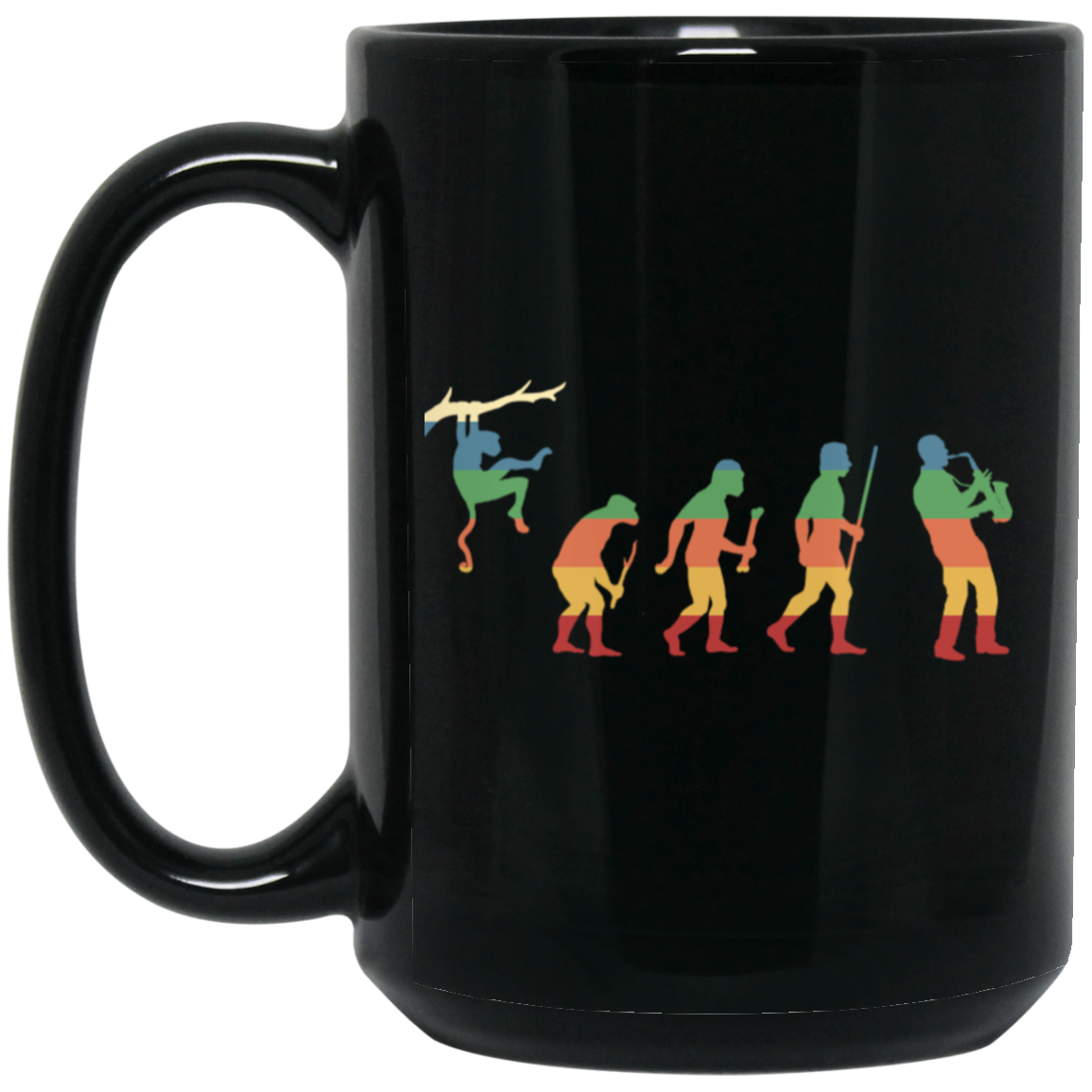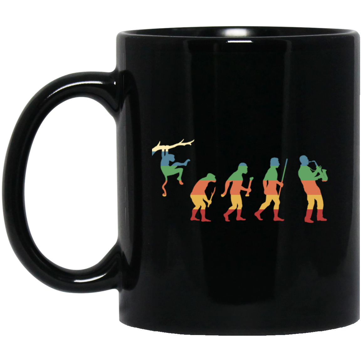 Evolution Saxophone, Music Lover, Jazz Musician, Instrument Vintage Black Mug