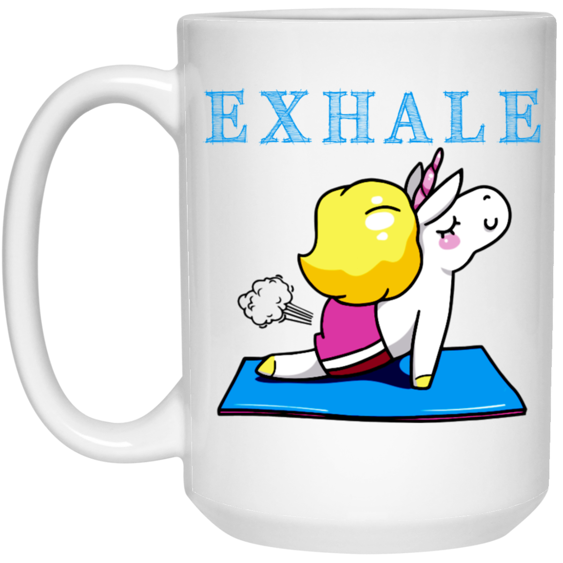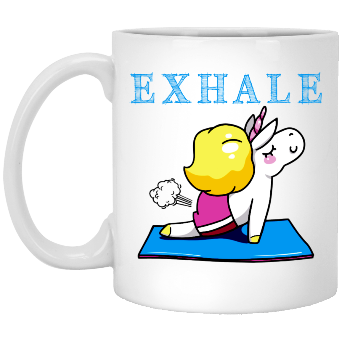 Exhale Unicorn Yoga, Please Exhale, Funny Yoga, Cute Unicorn Do Yoga White Mug