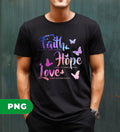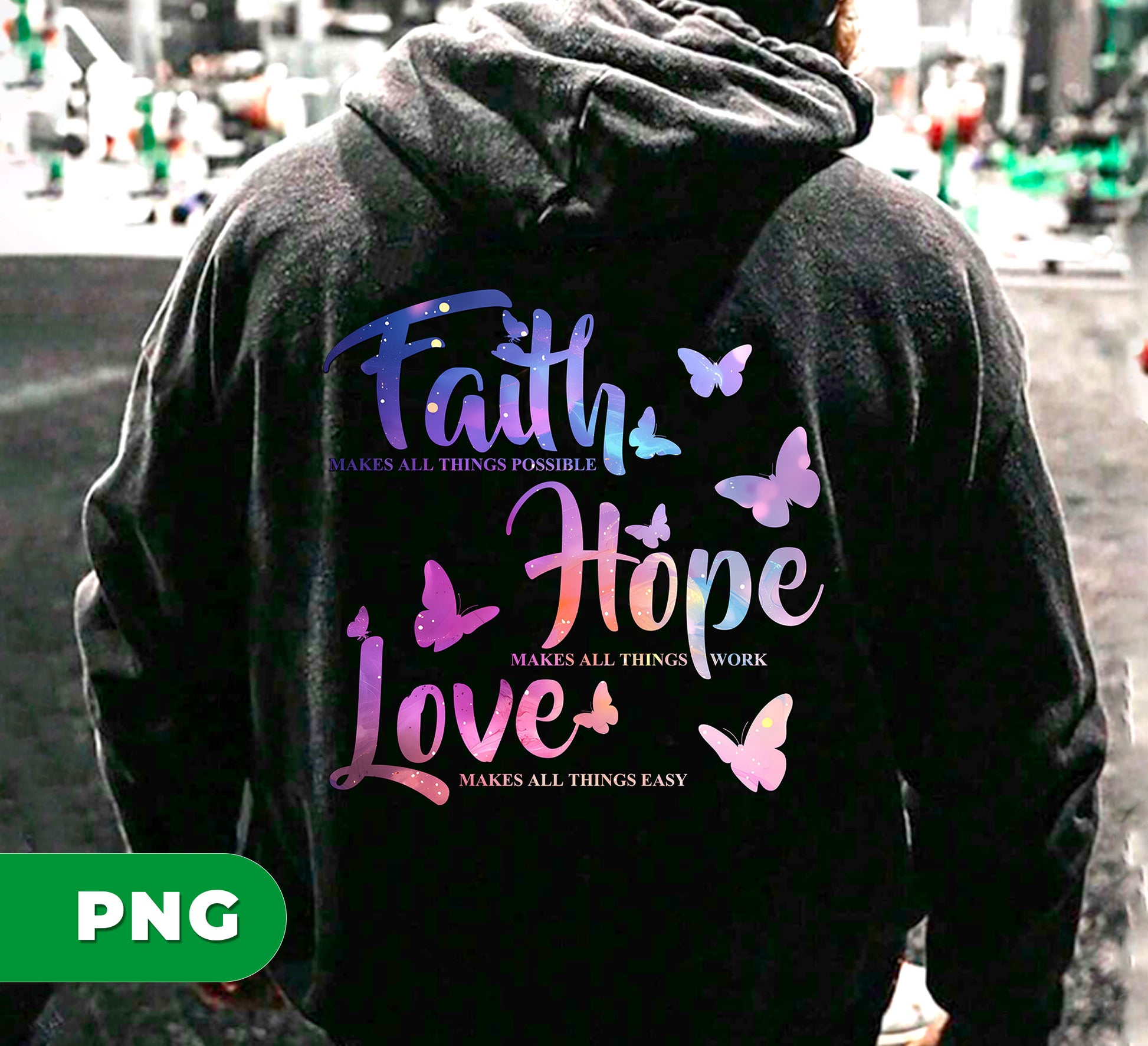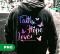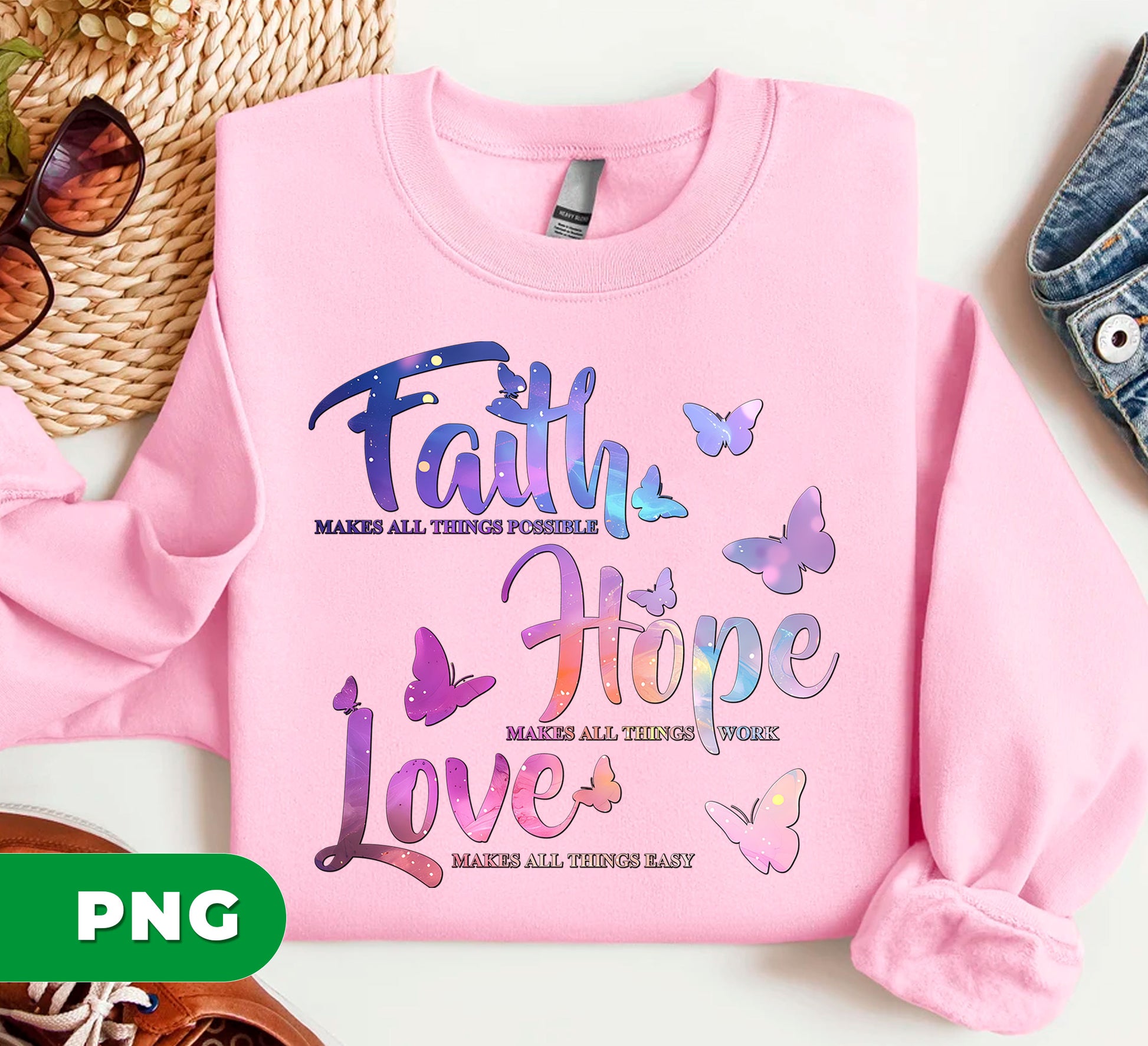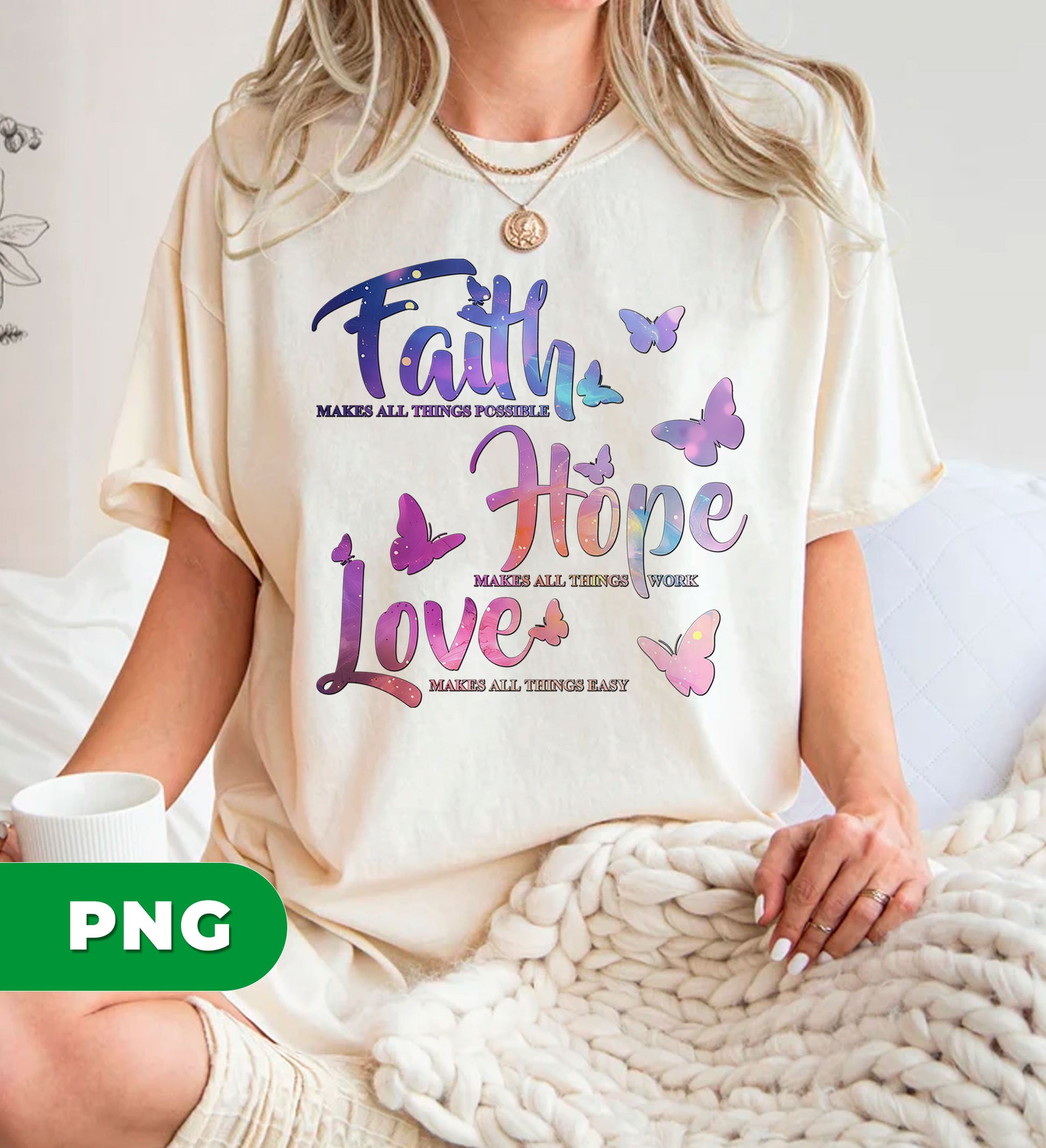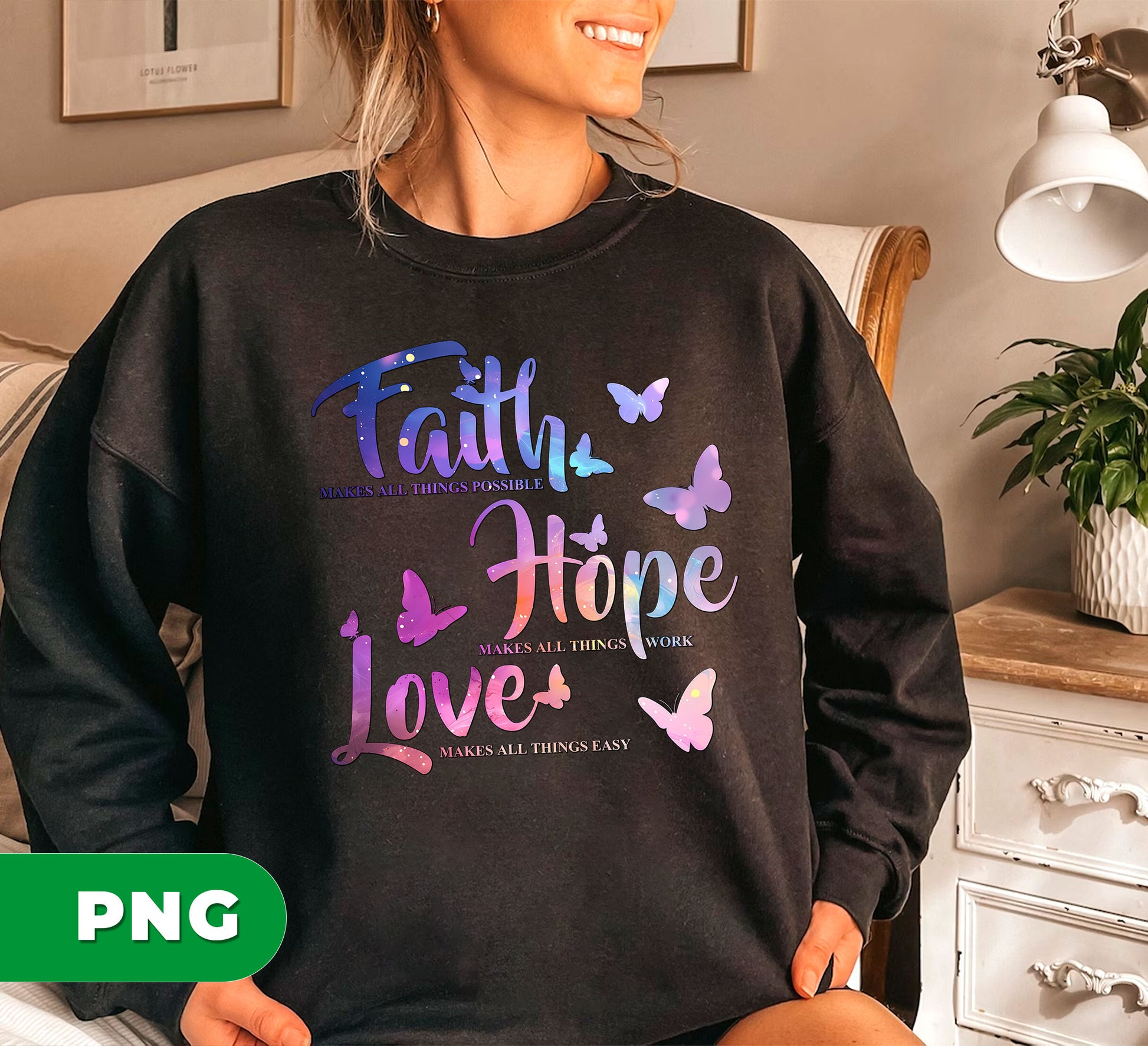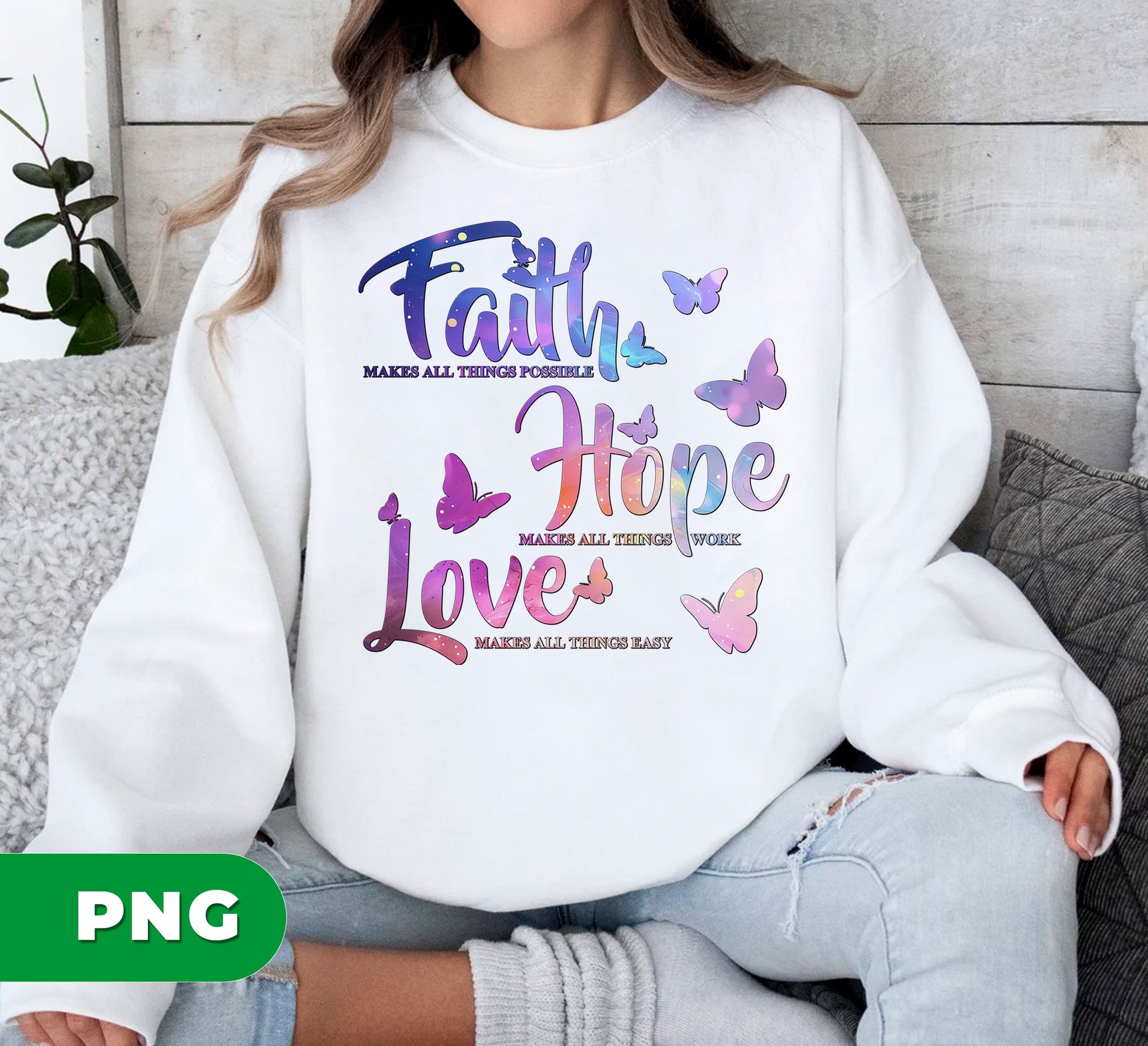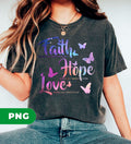 Faith Hope Love PNG, Christian Sublimation Design with Butterflies, Inspirational Bible Verse Clipart, Religious Quote Word Art