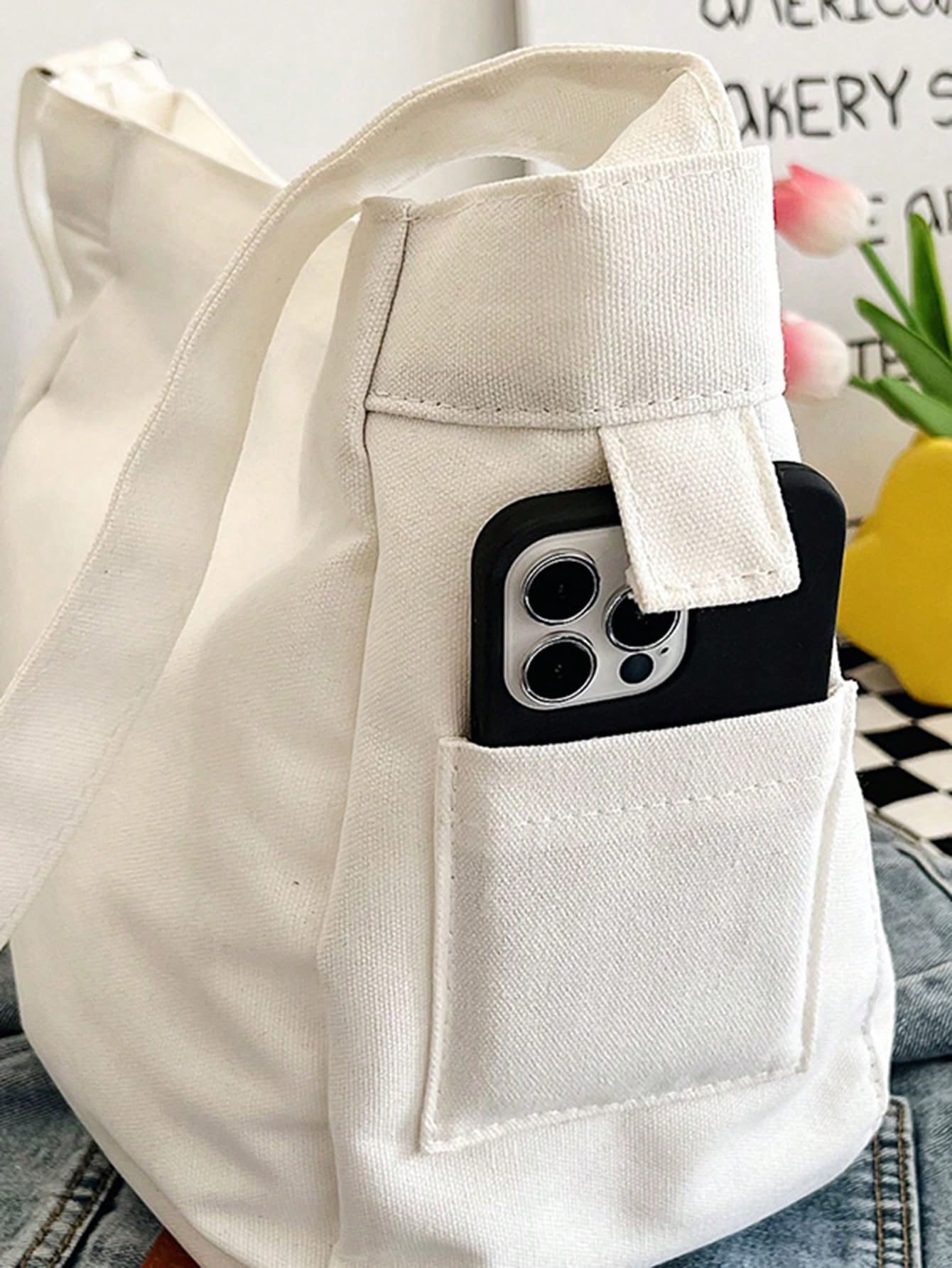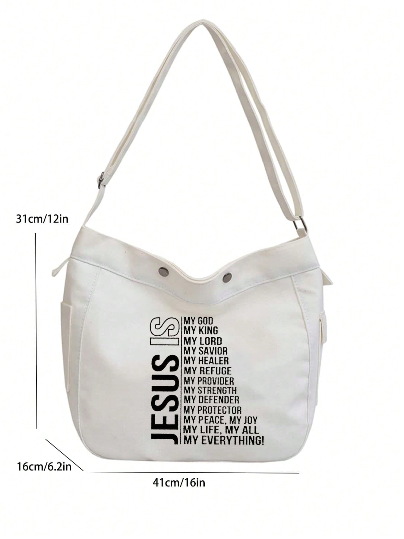 Faith Over Fear: Vintage Letter Print Multi-Pocket Tote Bag for School & Travel