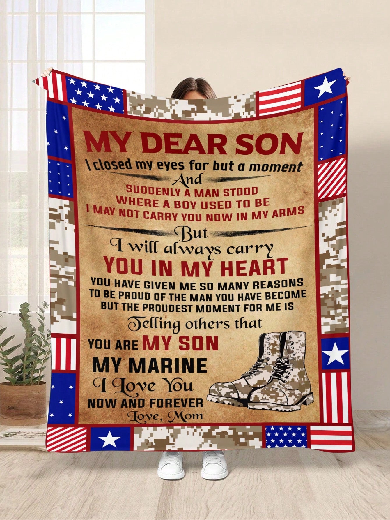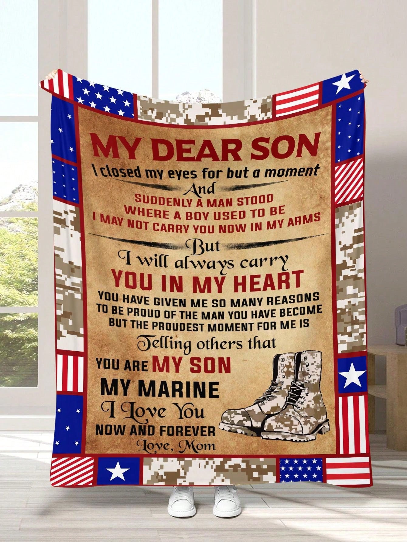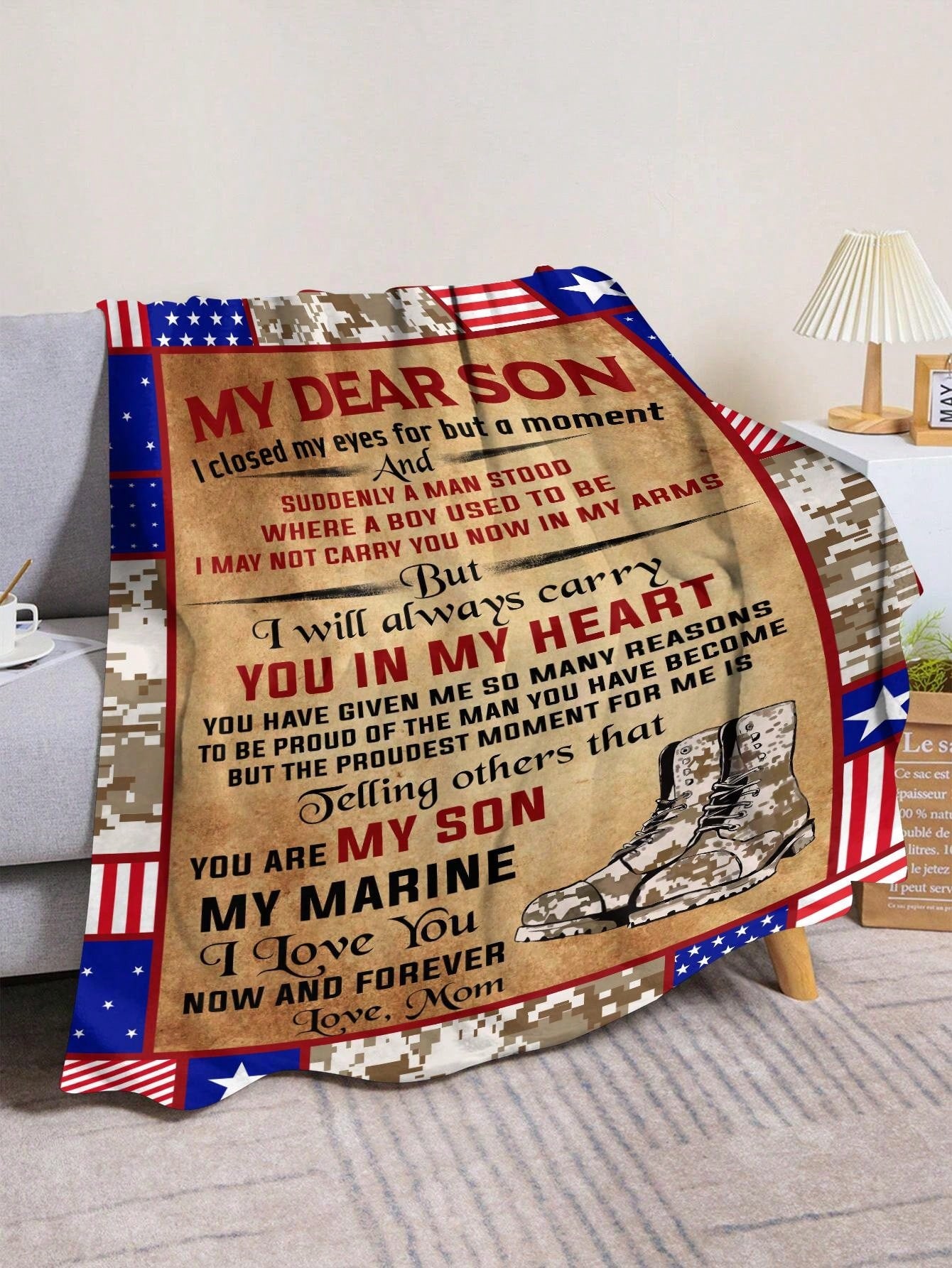 Family Love Patterned Blanket: Soft Flannel Sofa Blanket for Queen, Dad, and Son