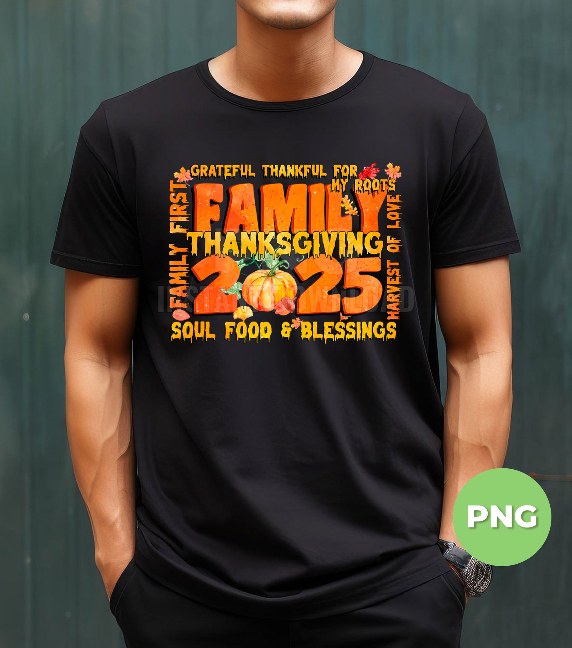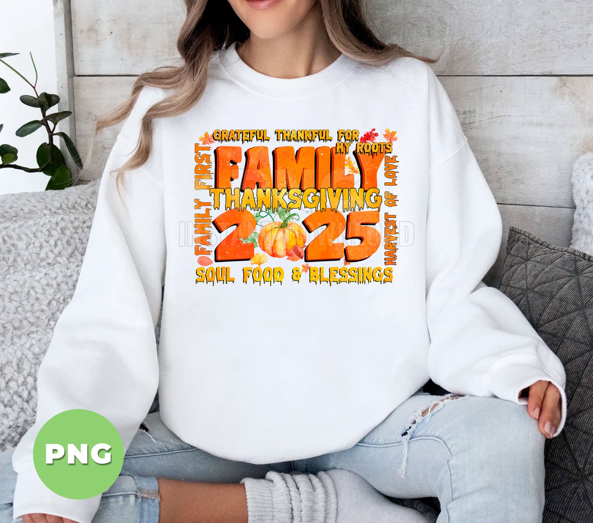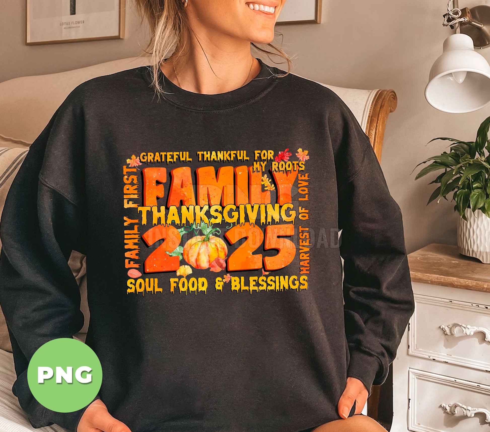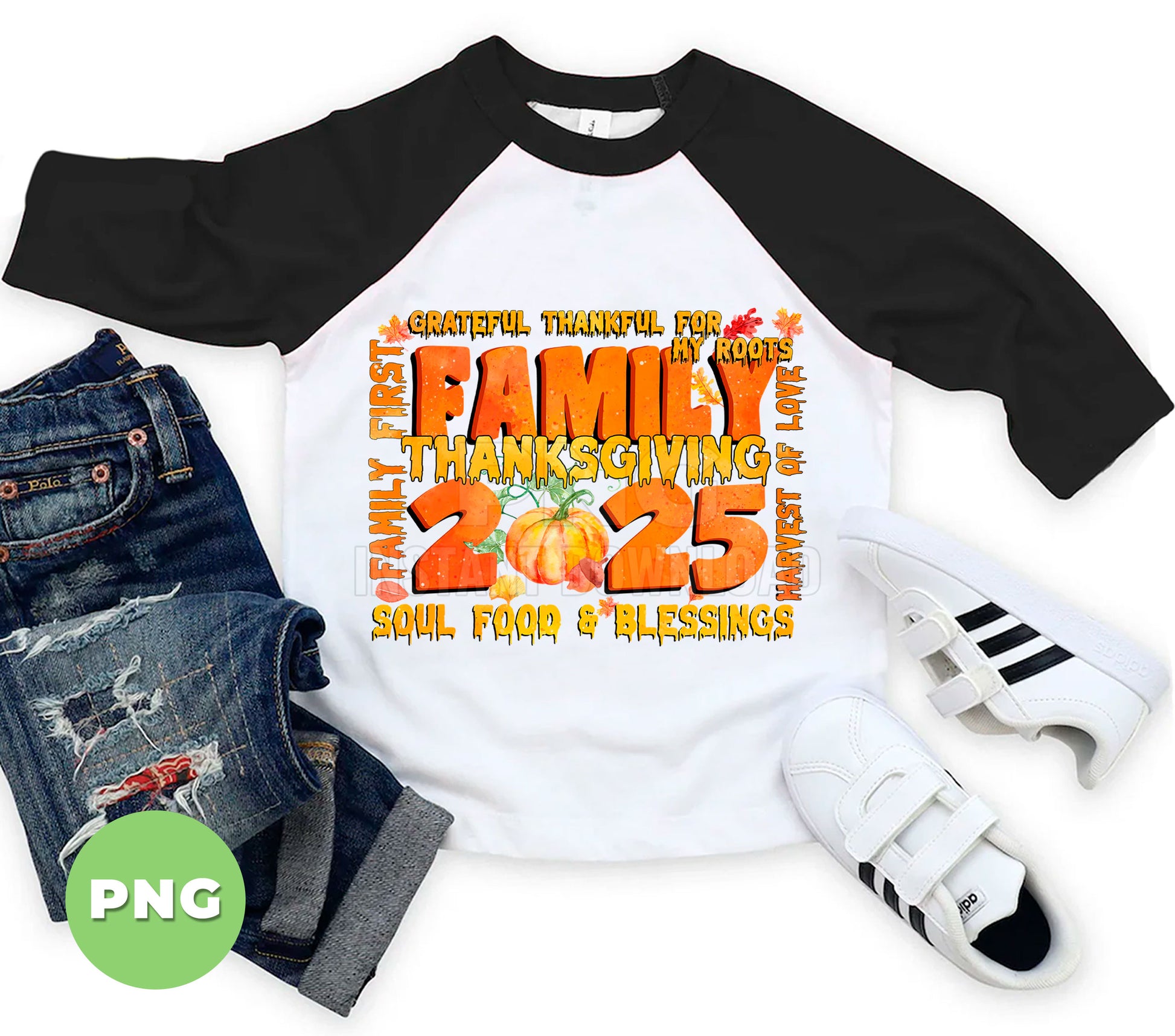 Family Thanksgiving 2025 Sublimation, Grateful Thankful Blessed, Fall Harvest Pumpkin Clipart