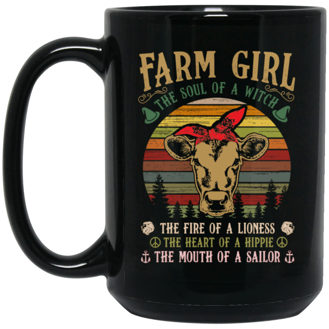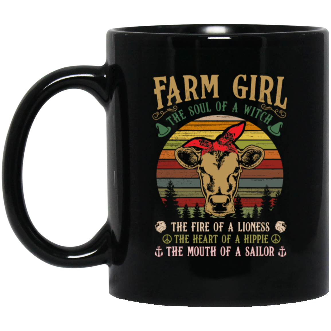 Farm Girl, Cute Cow Retro Gift, The Soul Of A Witch, Vintage Cow Black Mug