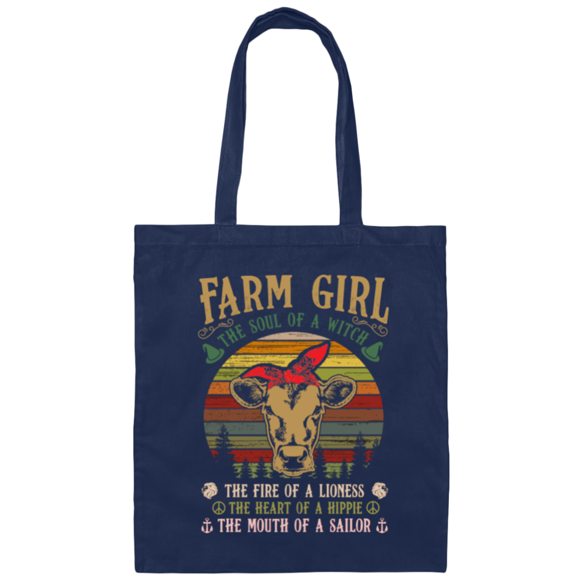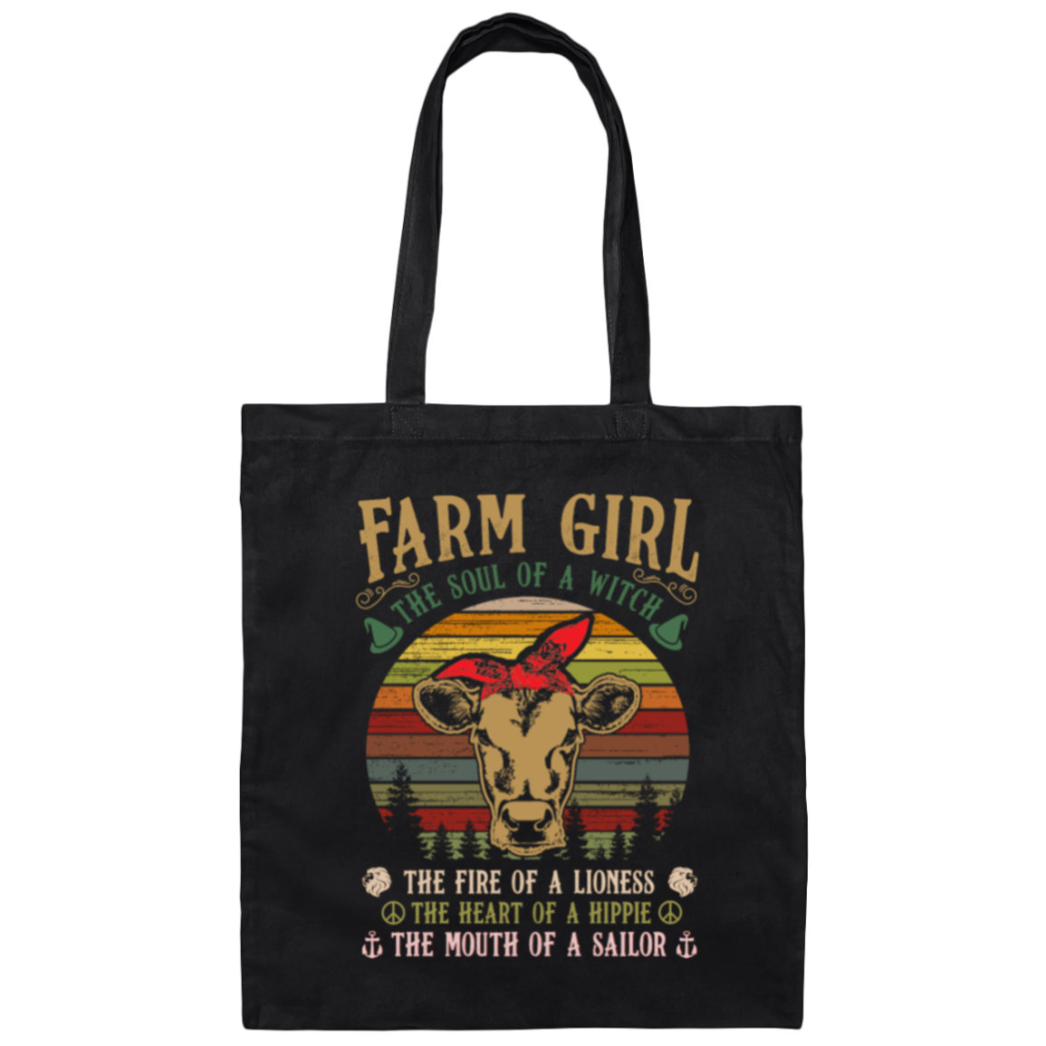 Farm Girl, Cute Cow Retro Gift, The Soul Of A Witch, Vintage Cow Canvas Tote Bag