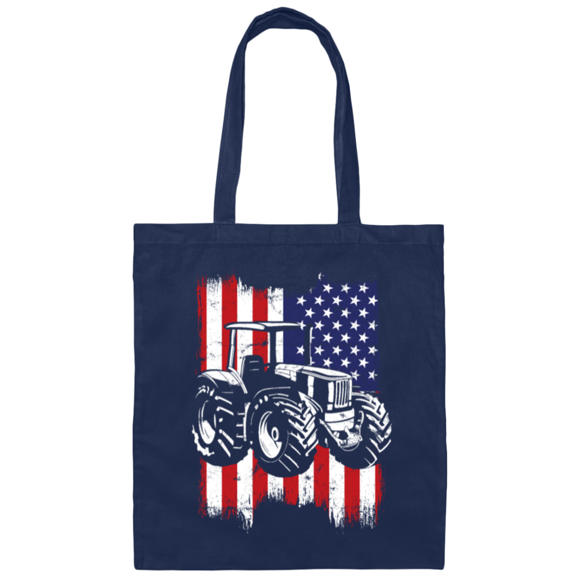 Farm Tractor Usa Flag, Patriotic Vintage Canvas Tote Bag