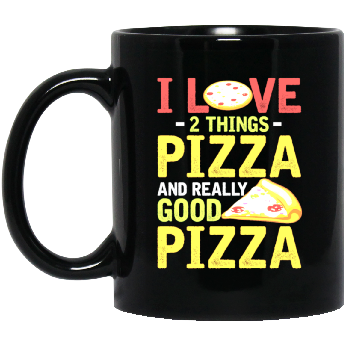 Fast Food Gift, Pizza Lover, I Love 2 Things Pizza And Really Good Pizza Black Mug