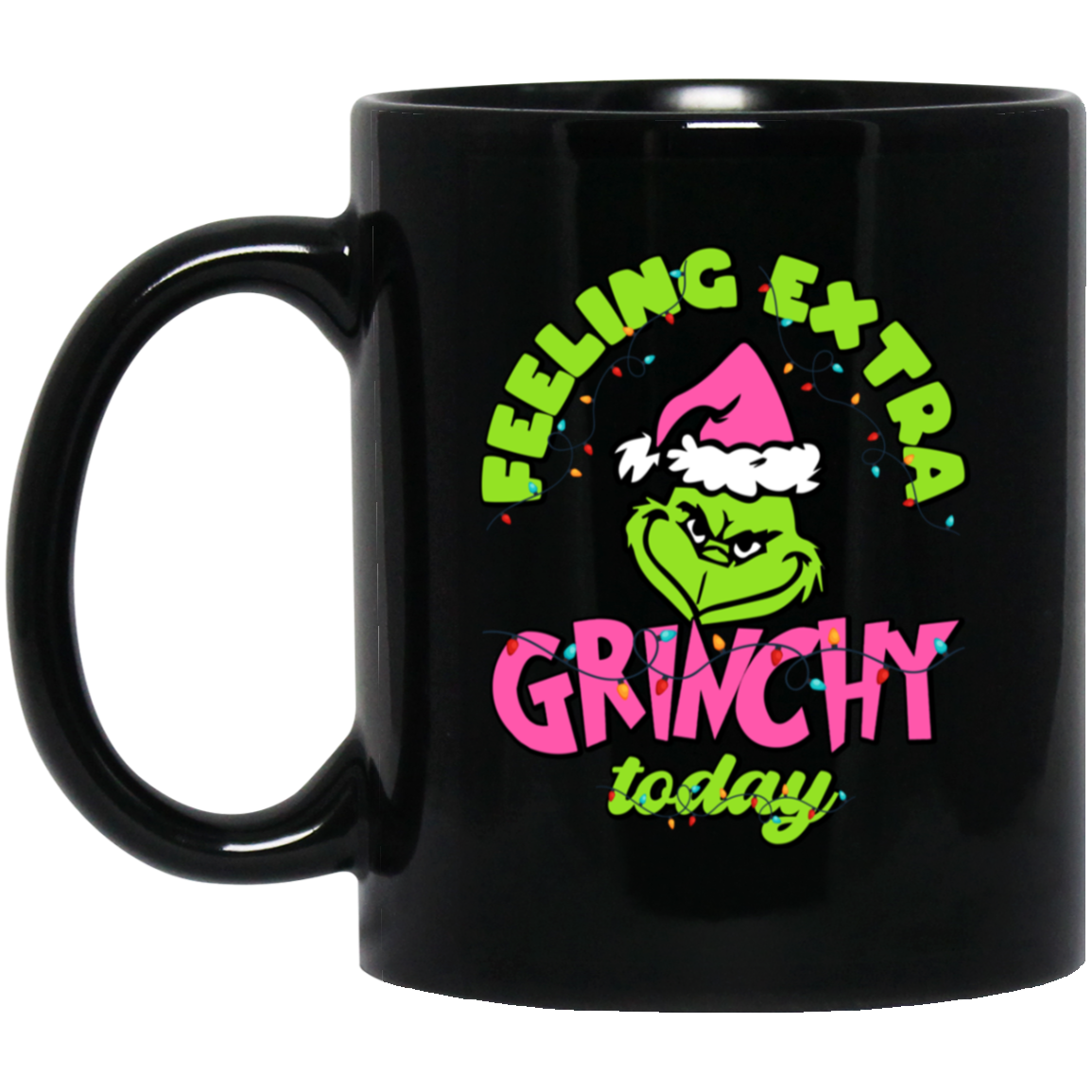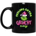 Feeling Extra Grinchy Today, Pink Grinchmas, Green Grinch, Merry Christmas, Trendy Christmas Black Mug