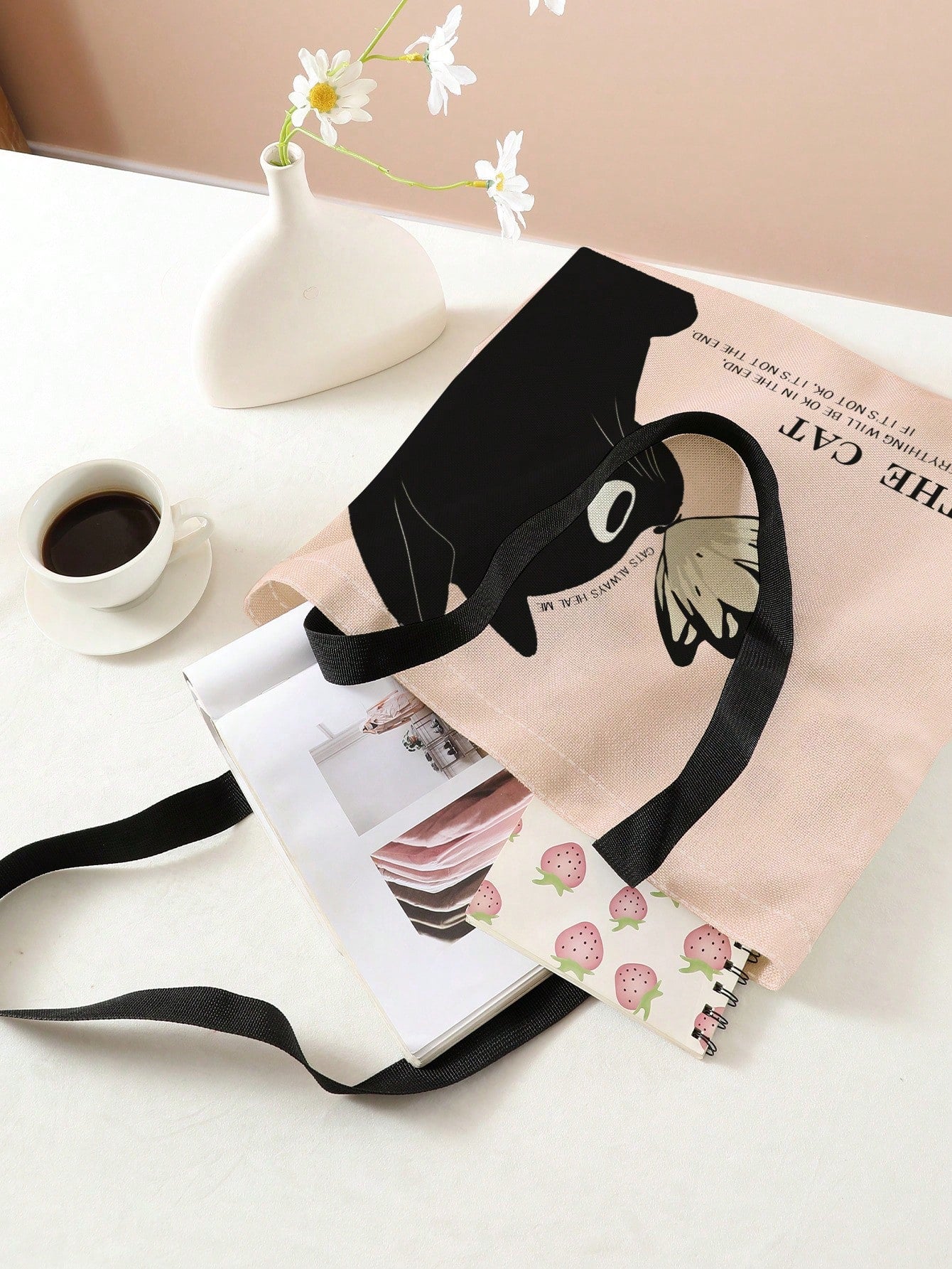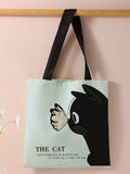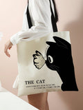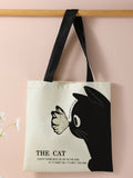 Feline Fashion: Cat Pattern Linen Shoulder Tote Bag