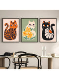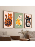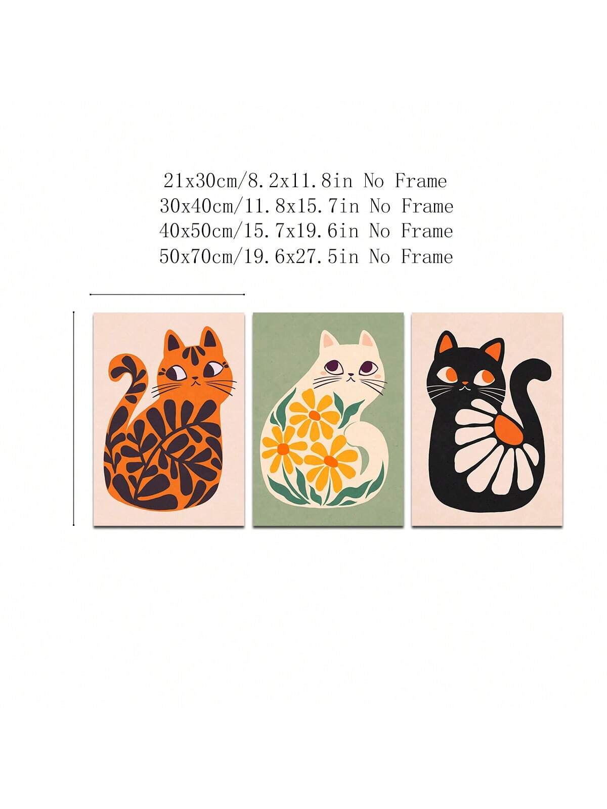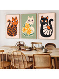Feline Frenzy: 3-Piece Bohemian Cat Art Prints Set for Purr-fect Home Decor