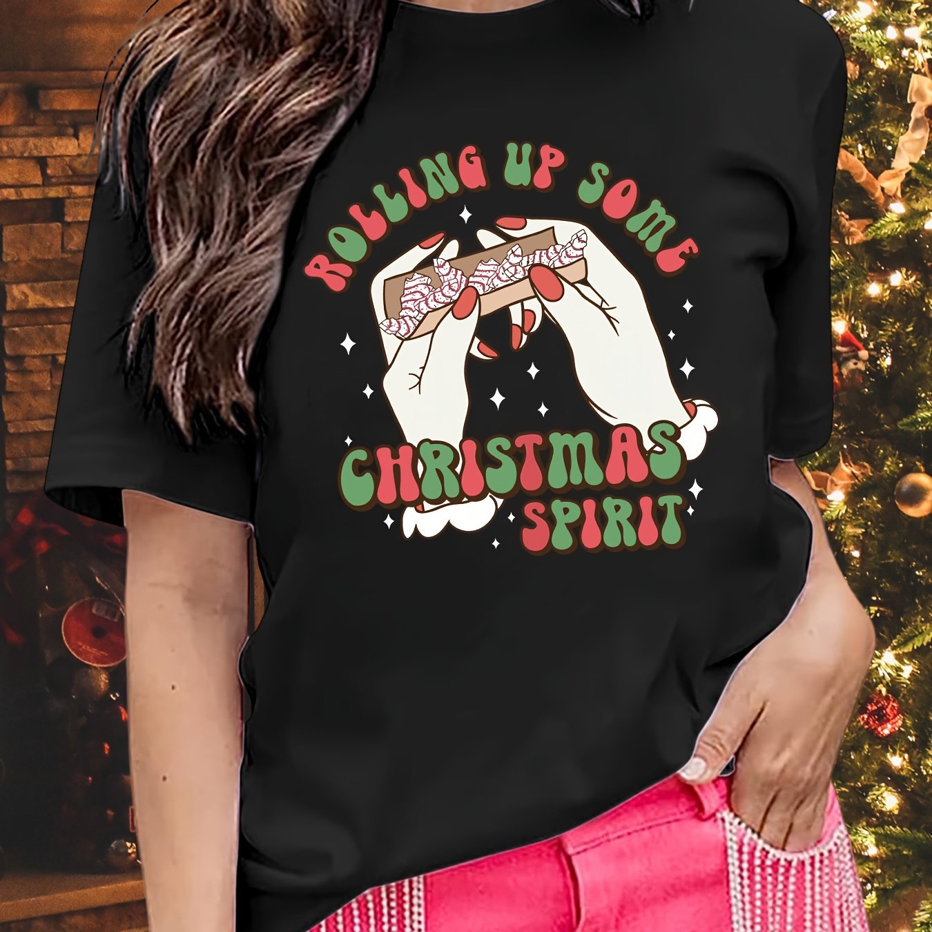 Festive and Funny: Christmas Creative Print Crew Neck T-Shirt for Women