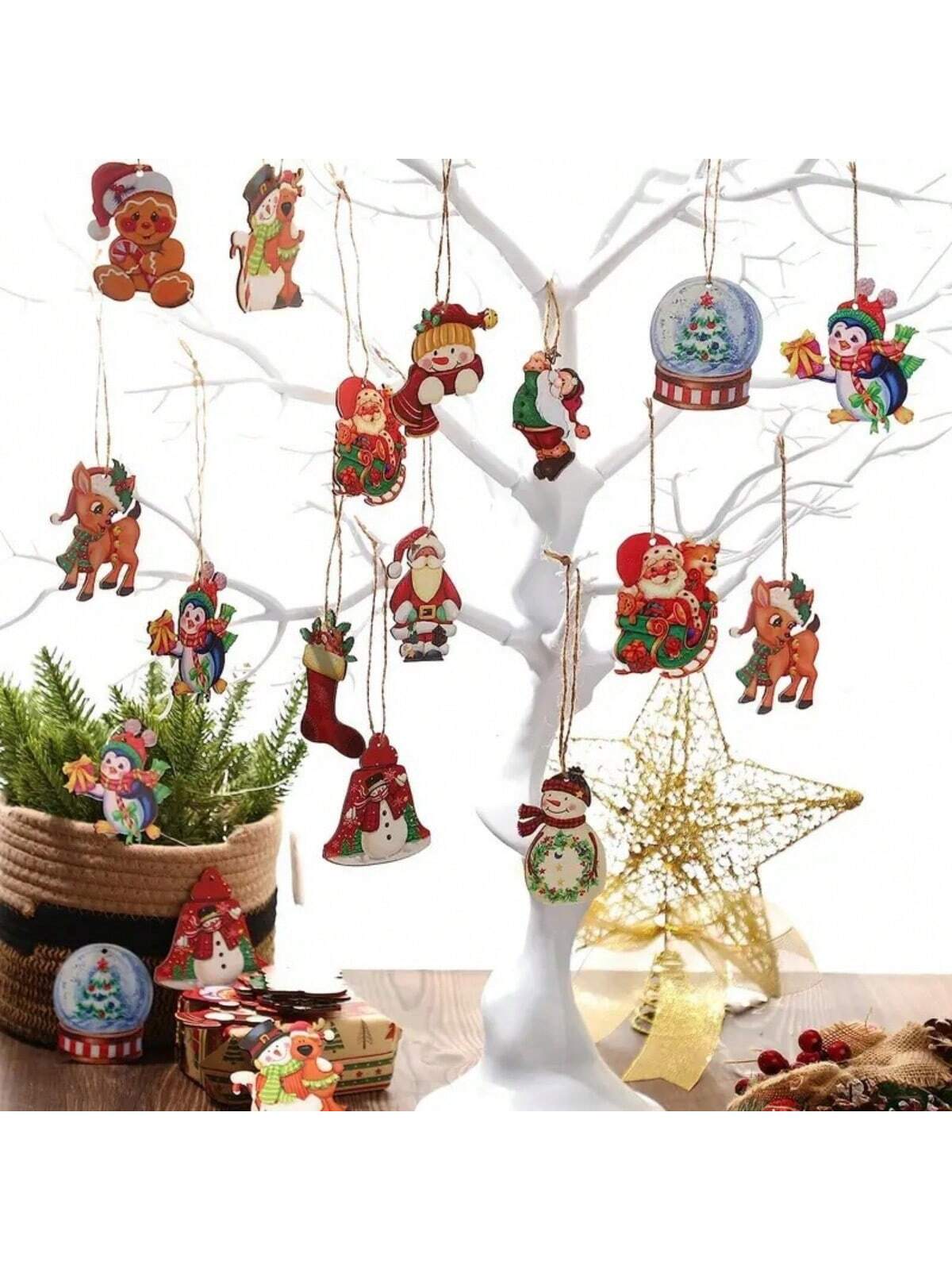 Festive Charm: 24-Piece Wooden Christmas Ornament Set for Holiday Home Decor