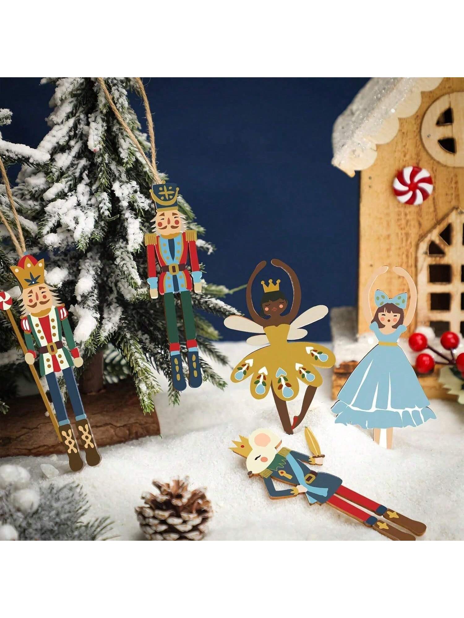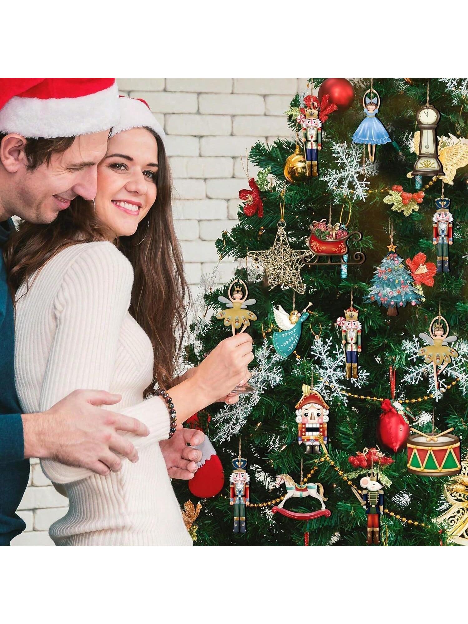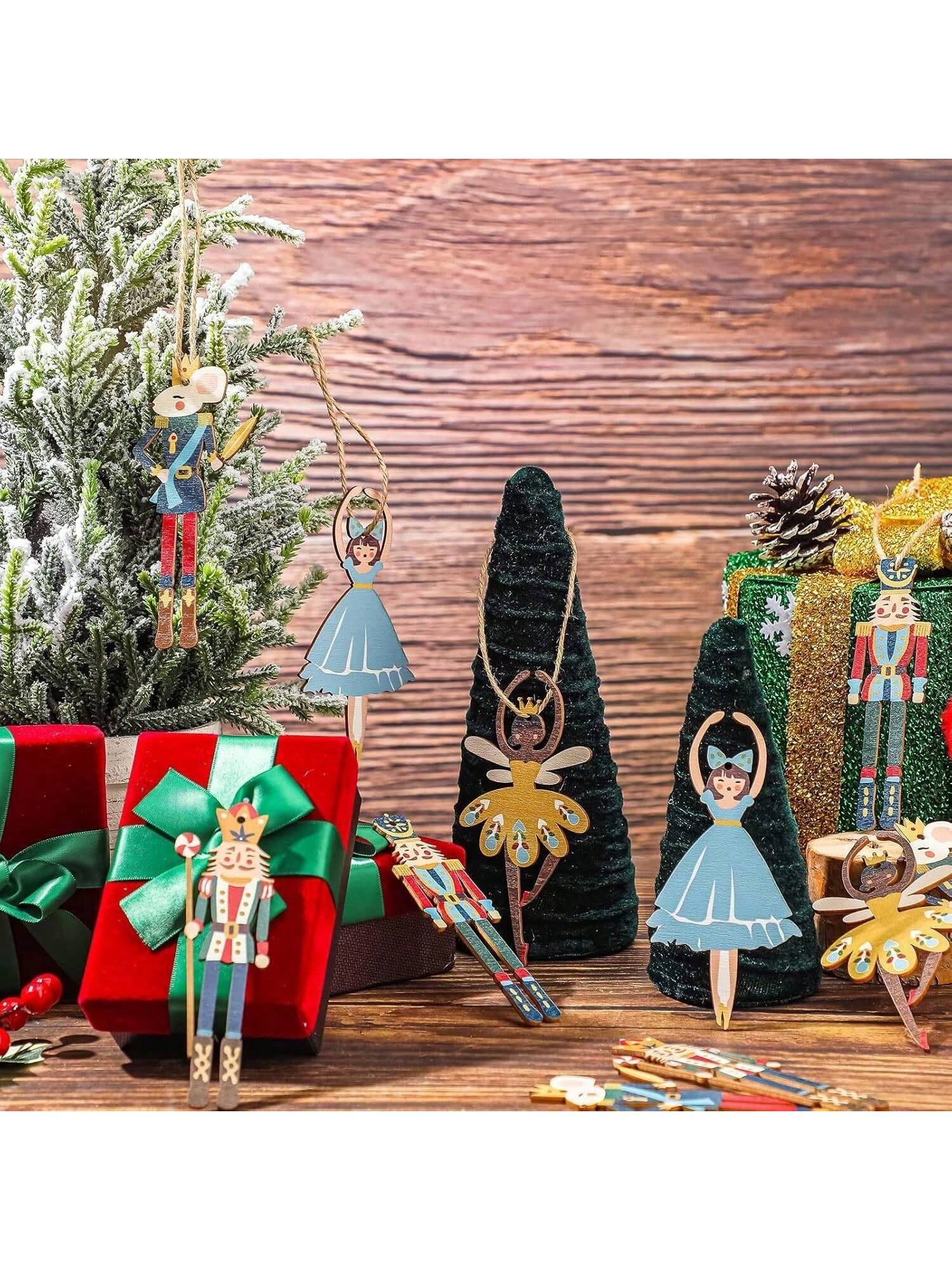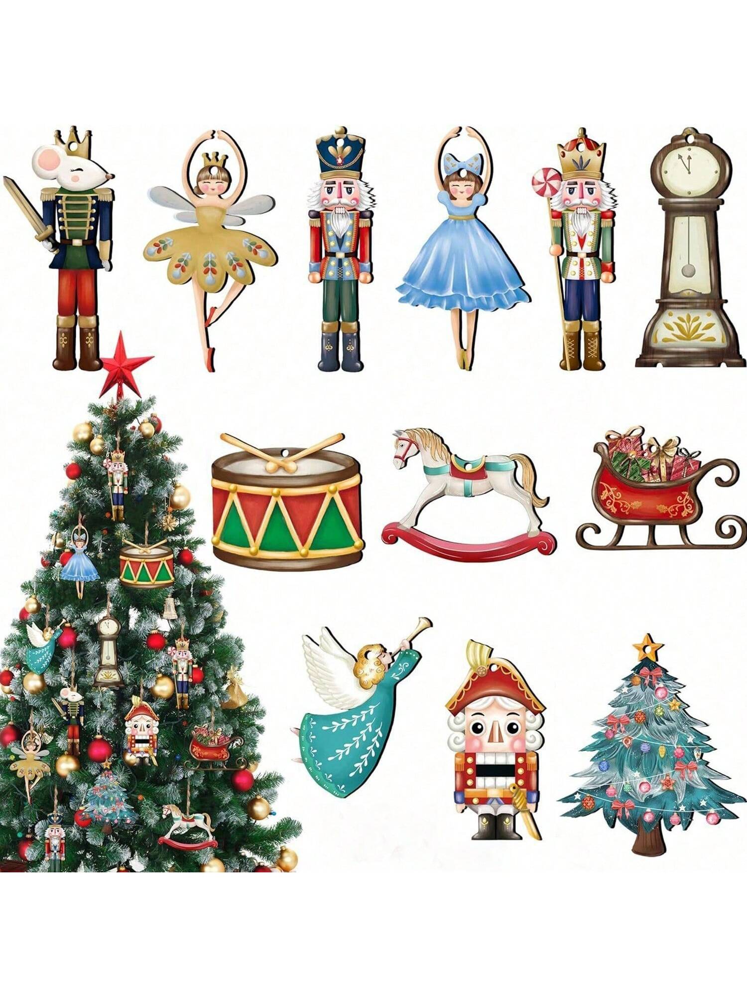 Festive Cheer: 12-Piece Wooden Nutcracker Ornament Set for Holiday Magic