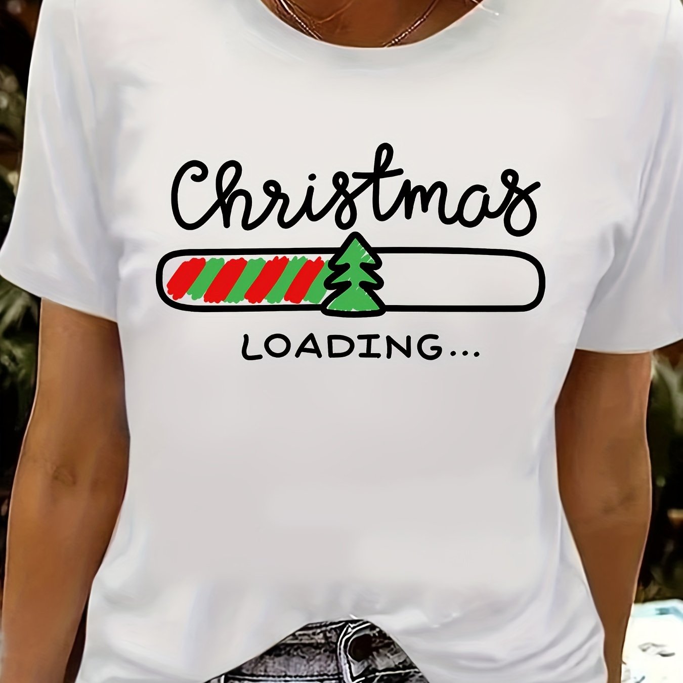 Festive Christmas Loading Print Tee: A Casual and Stylish Short Sleeve Crew Neck T-shirt for Women's Clothing