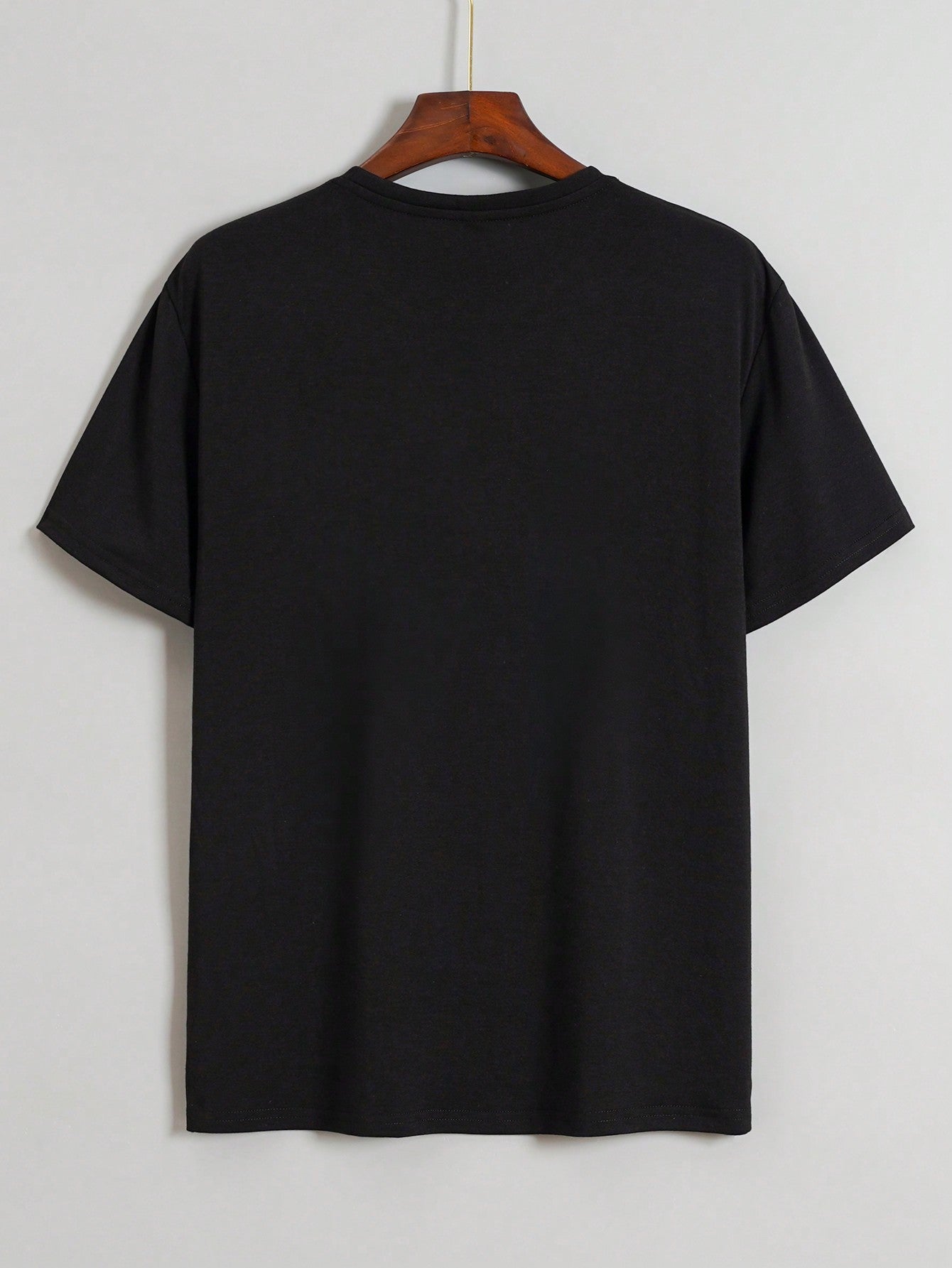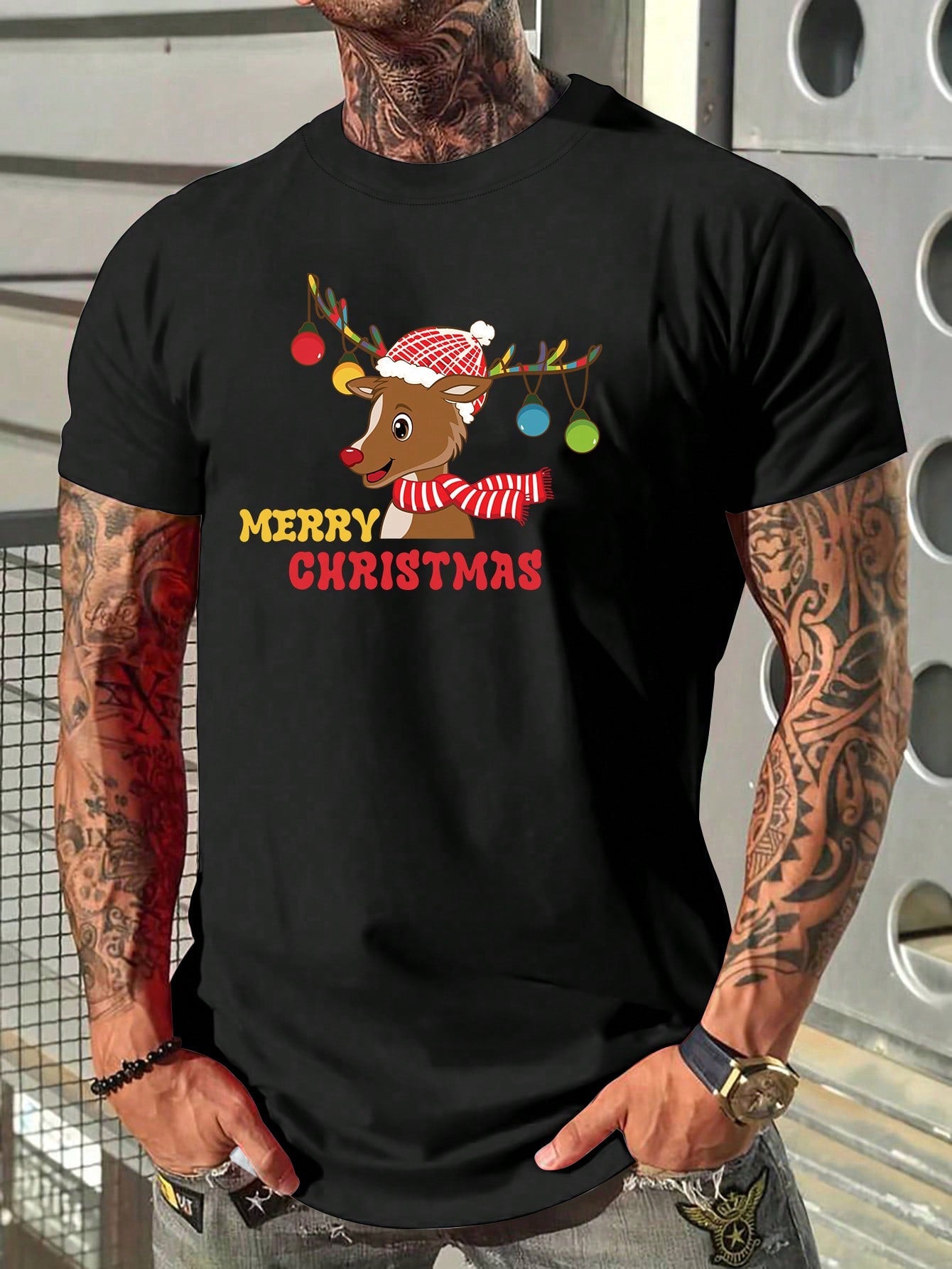 Festive Christmas Reindeer and Slogan Print Men's Short Sleeve T-shirt for a Stylish Holiday Look