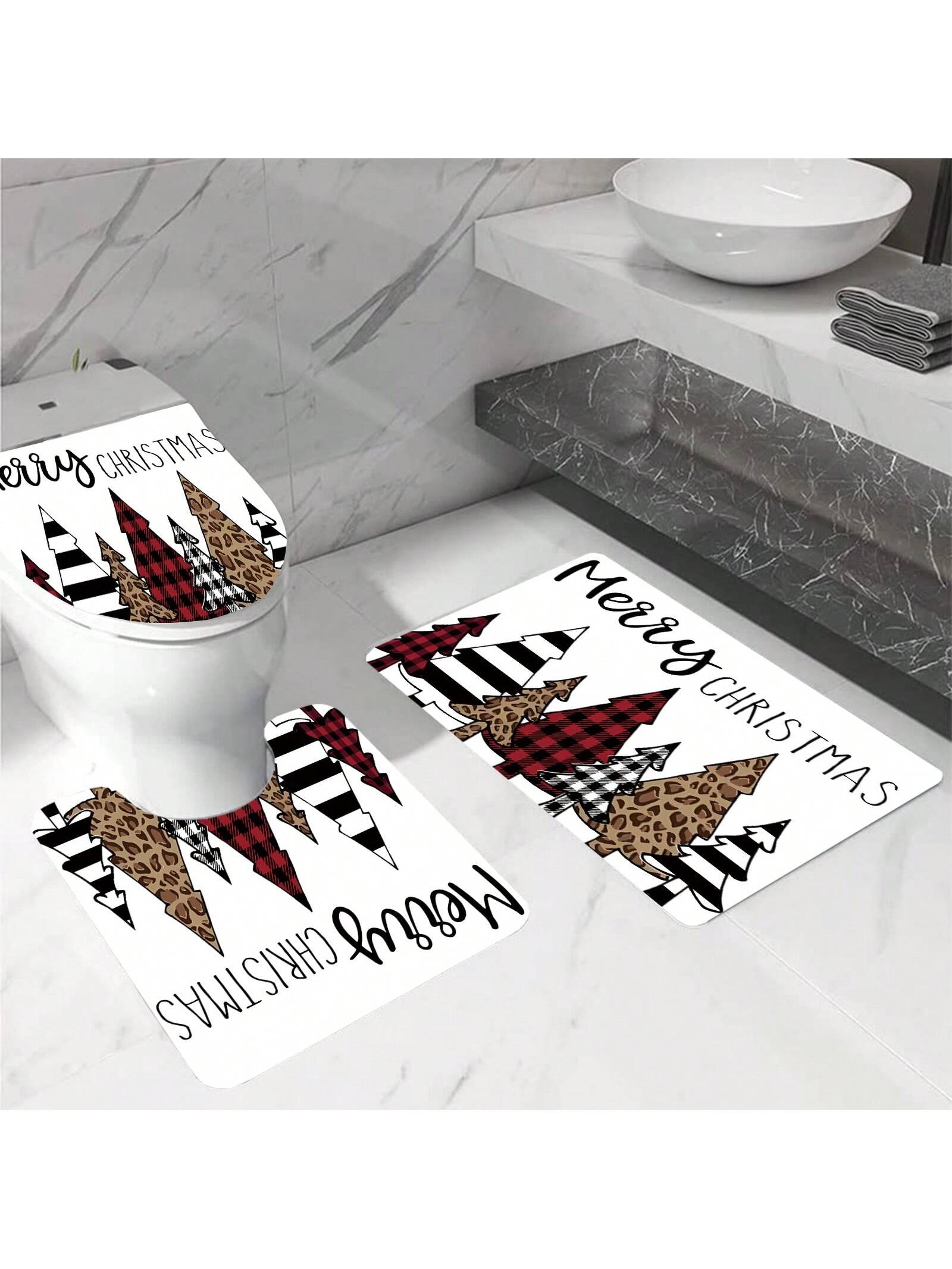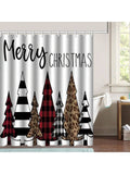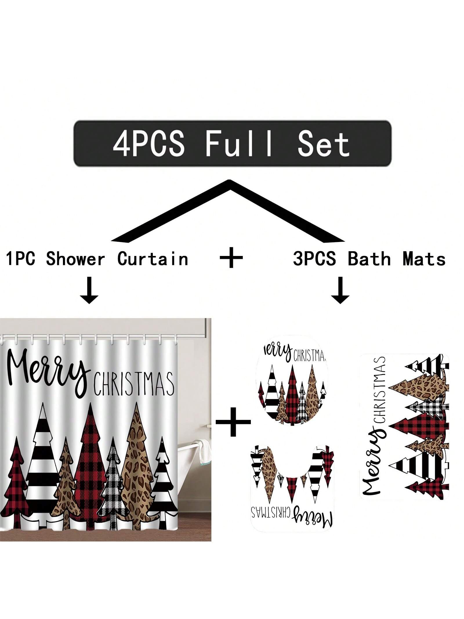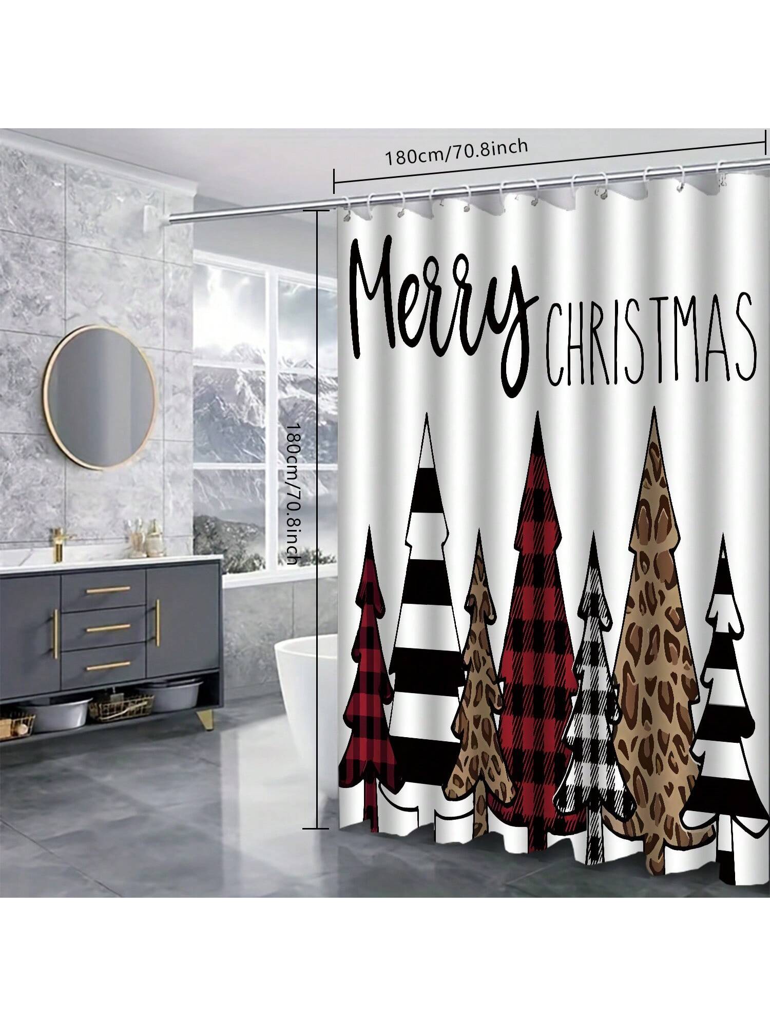 Festive Christmas Shower Curtain Set with Holiday Mat & Hooks – Cheerful Bathroom Decor
