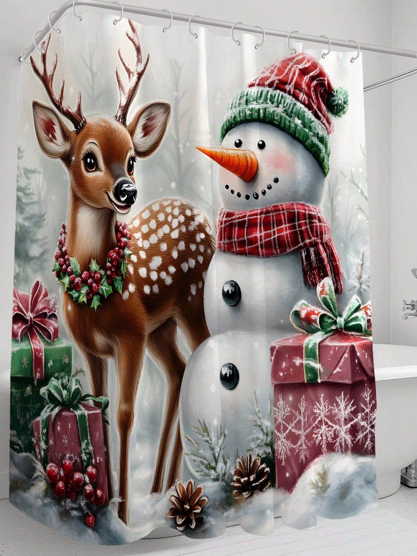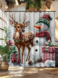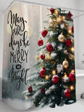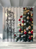 Festive Christmas Tree Shower Curtain - Waterproof and Mildew Resistant with Hooks & Grommets