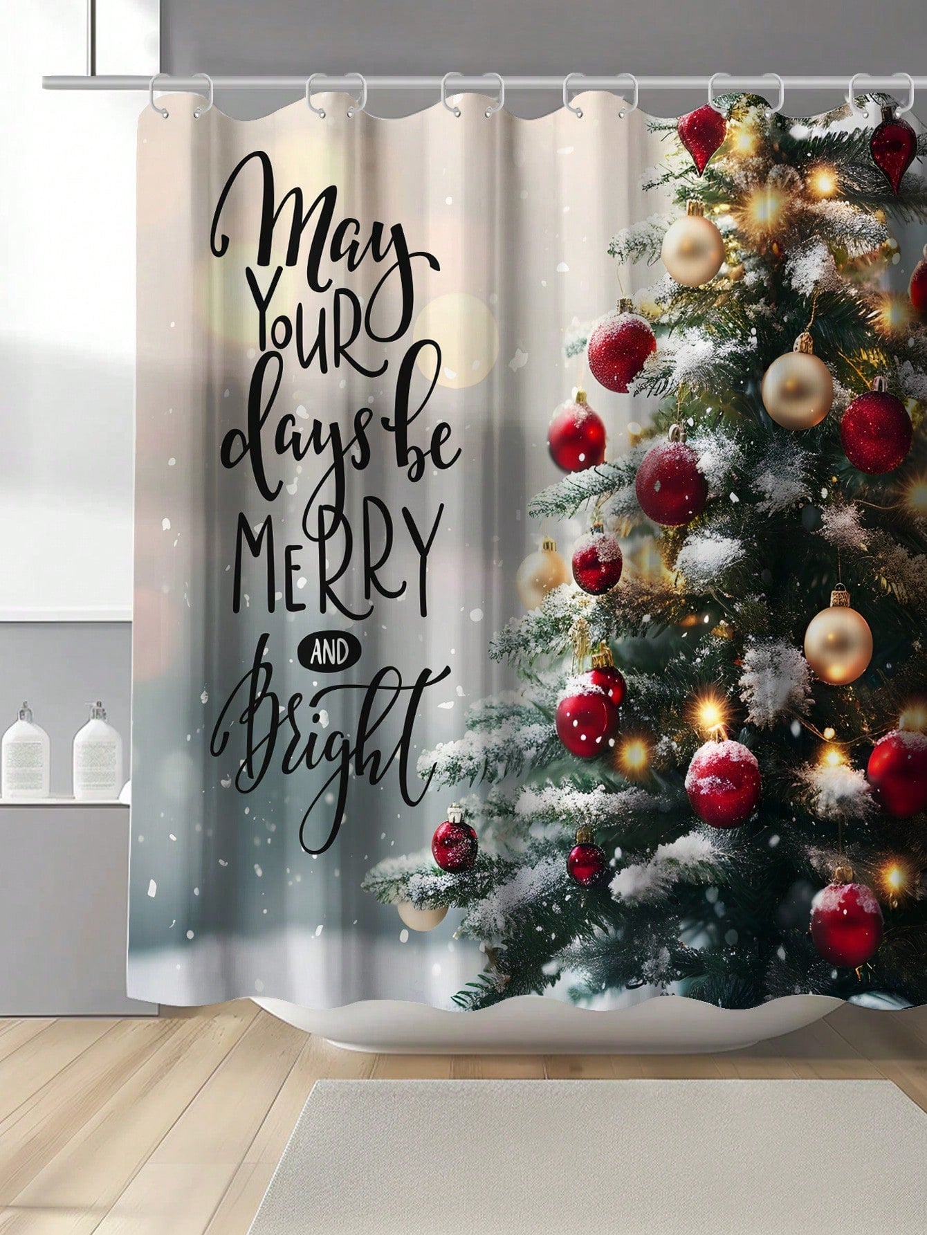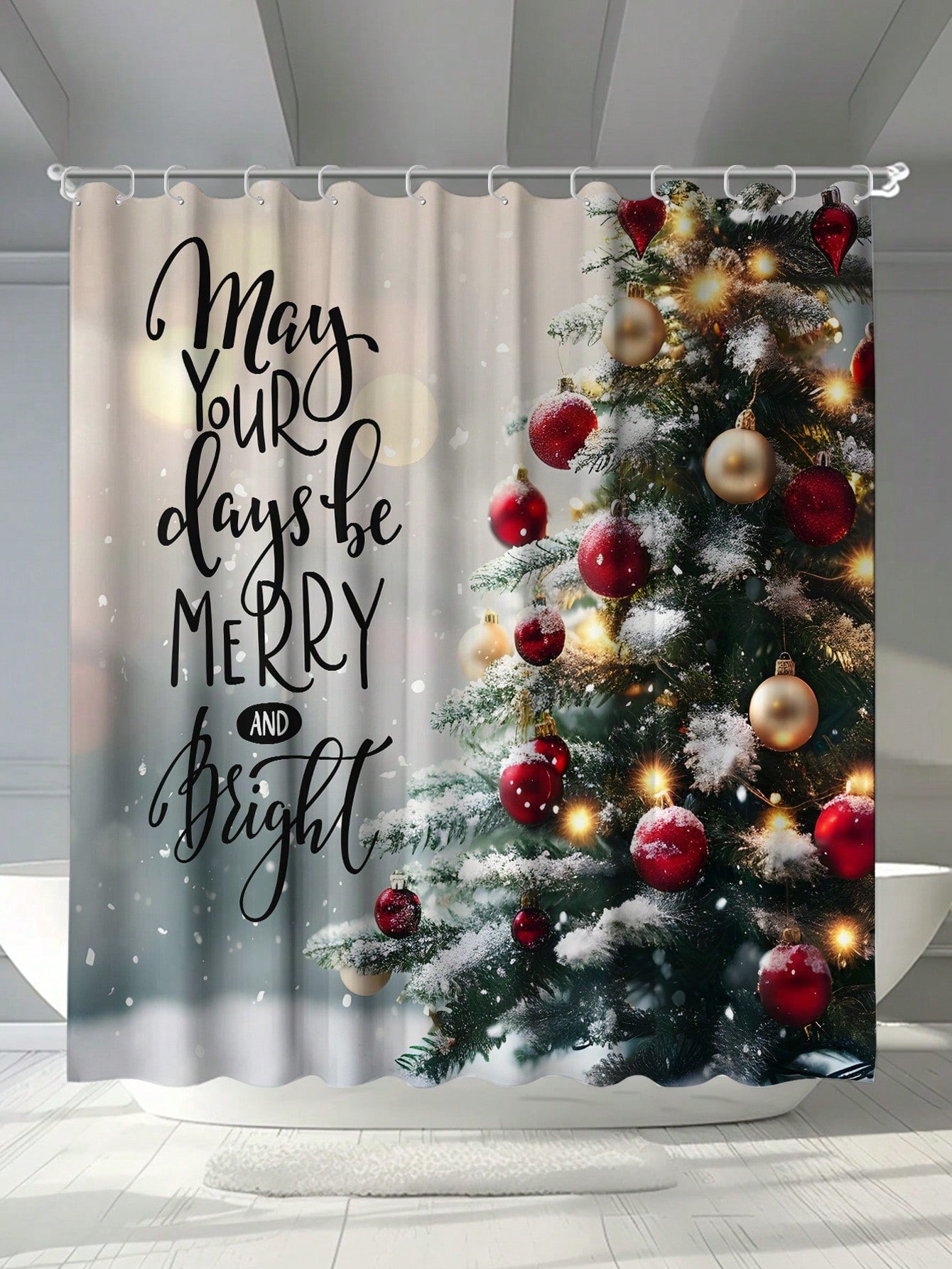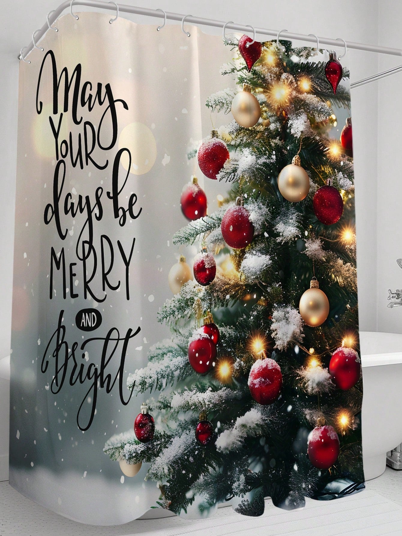 Add a touch of holiday cheer to your bathroom with our Festive Christmas Tree Shower Curtain! Made with waterproof and mildew resistant material, this shower curtain will last for years to come. And with included hooks and grommets, it's easy to install. Bring some festive spirit to your daily routine!