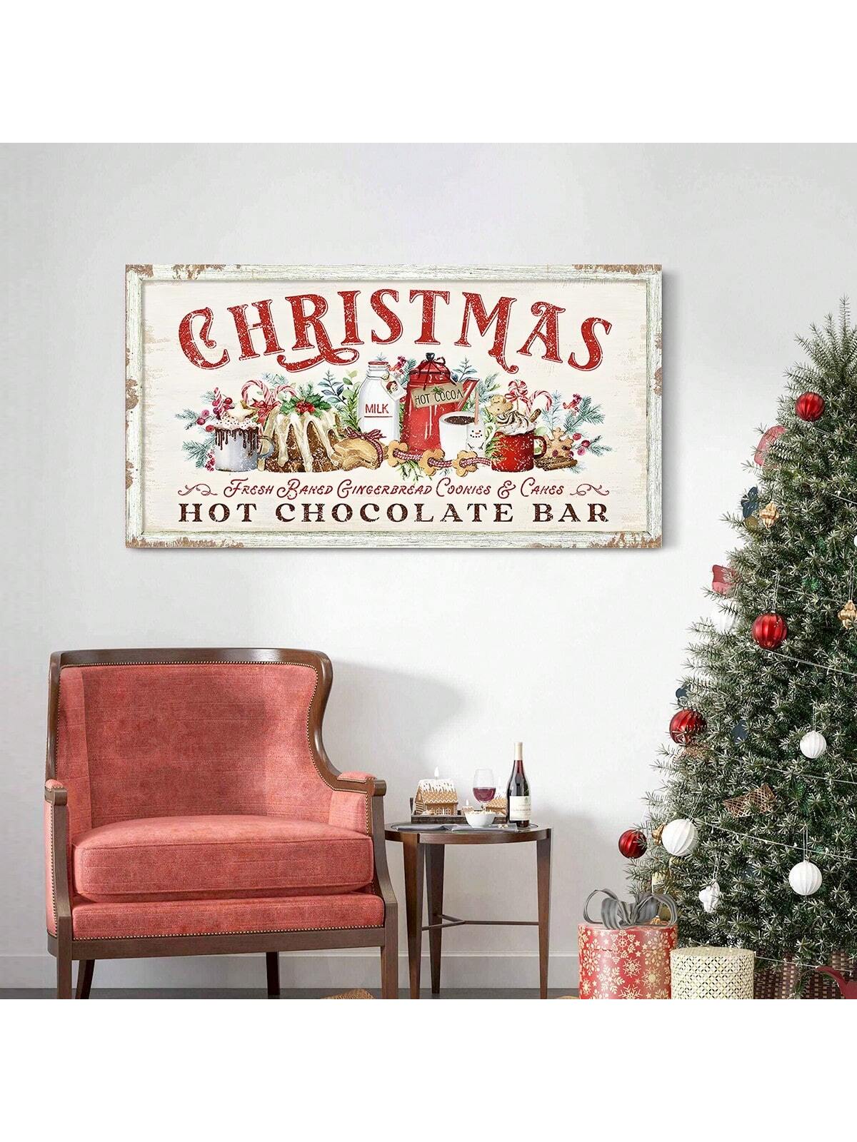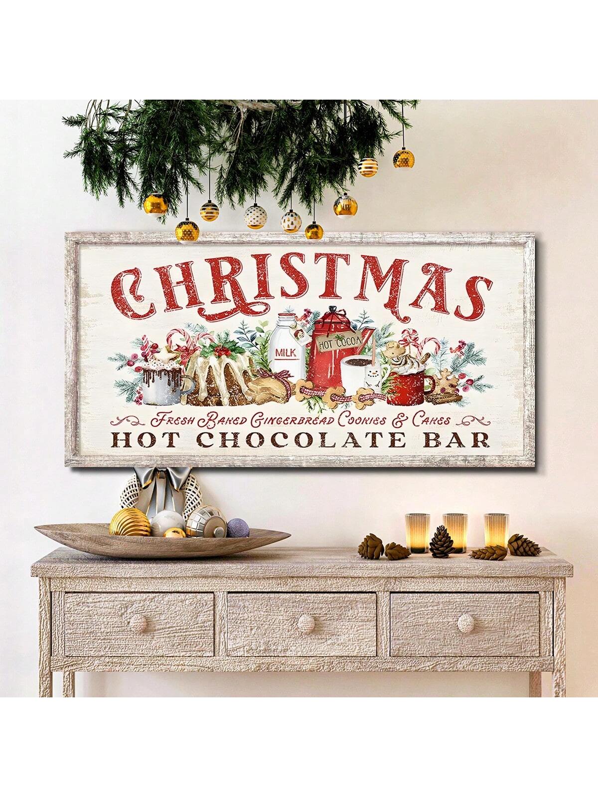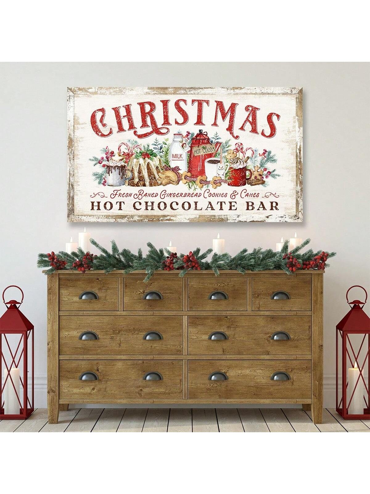 Festive Farmhouse Christmas Wall Art: Hot Cocoa Bar Canvas Decoration