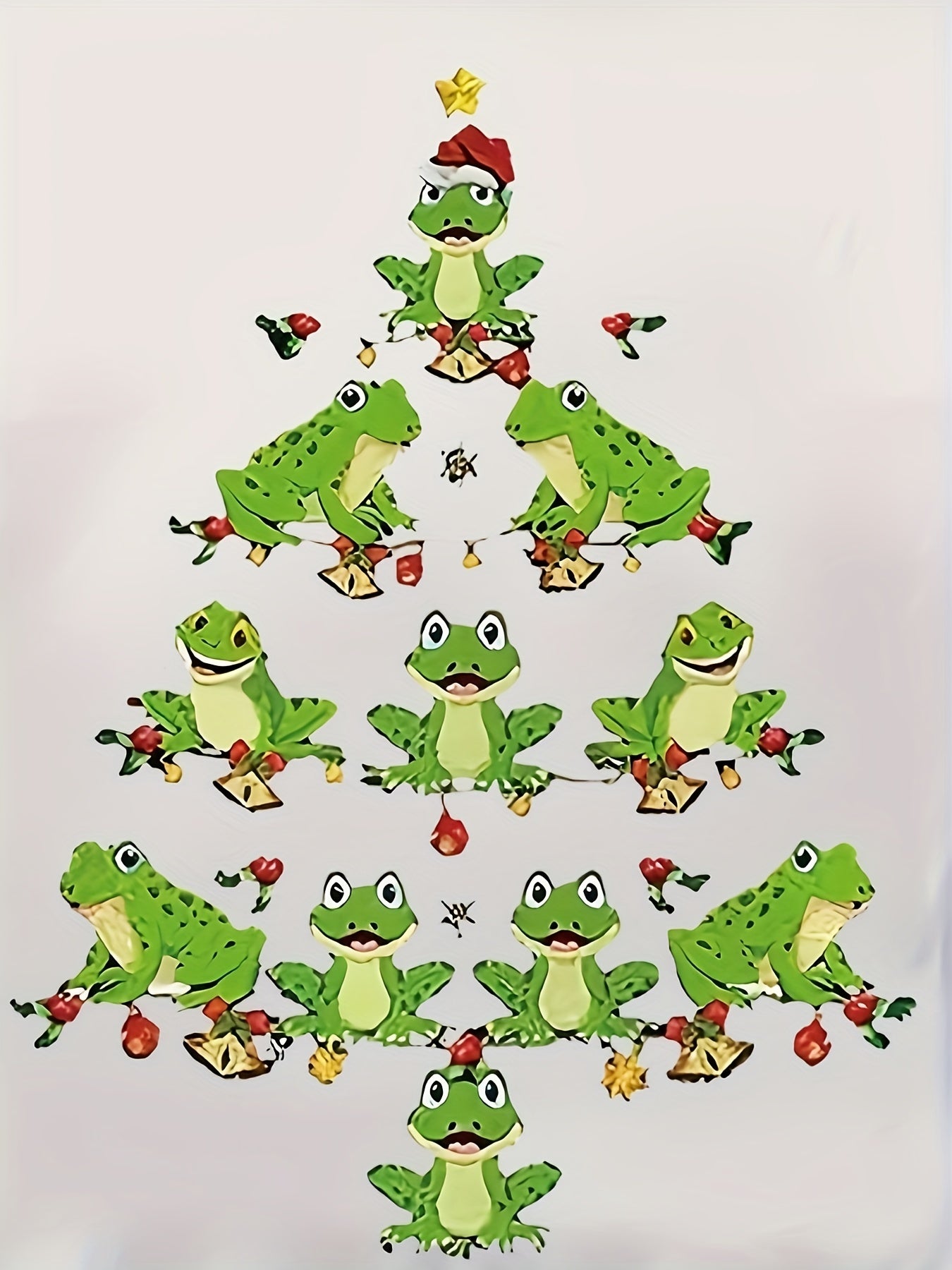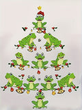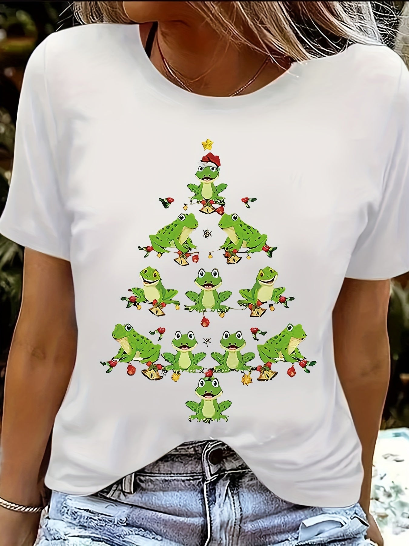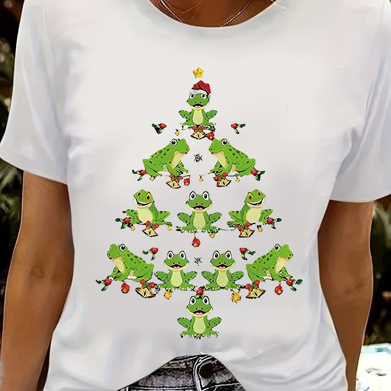 Festive Frogs: Christmas Tree Print T-Shirt – A Playful Addition to Women's Casual Wardrobe