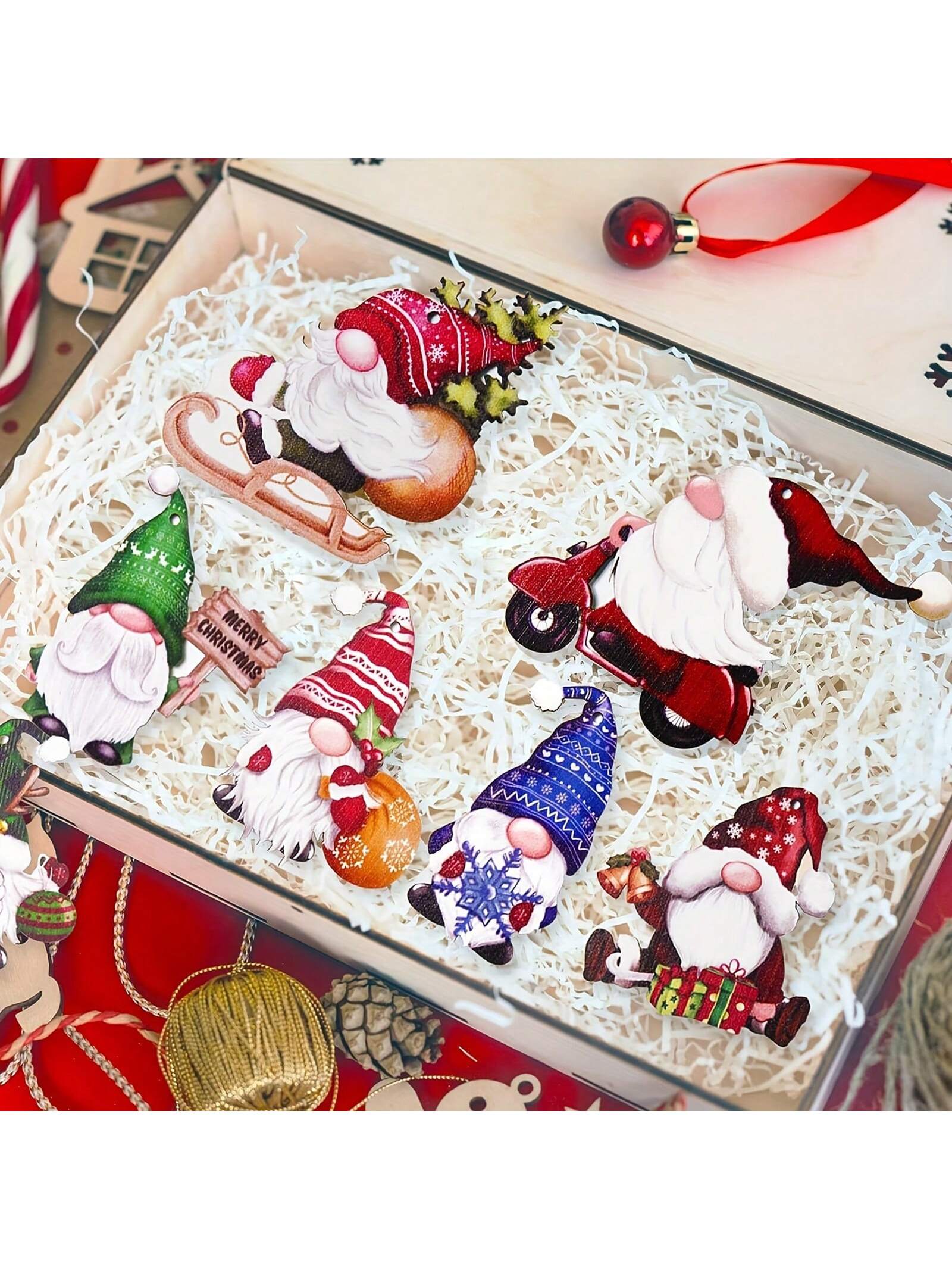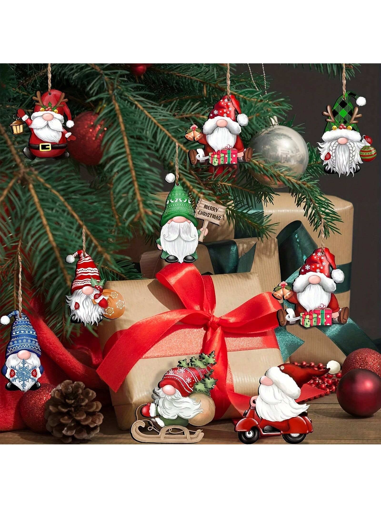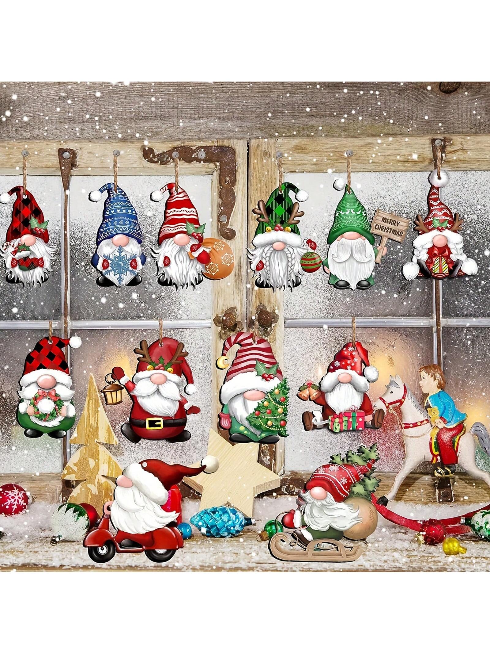 Festive Gnome Wonderland: 24-Piece Wooden Hanging Decorations for Christmas Cheer