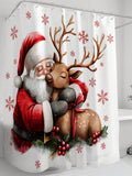 Festive Holiday Cheer: Santa Claus & Poinsettia Waterproof Shower Curtain with Hooks