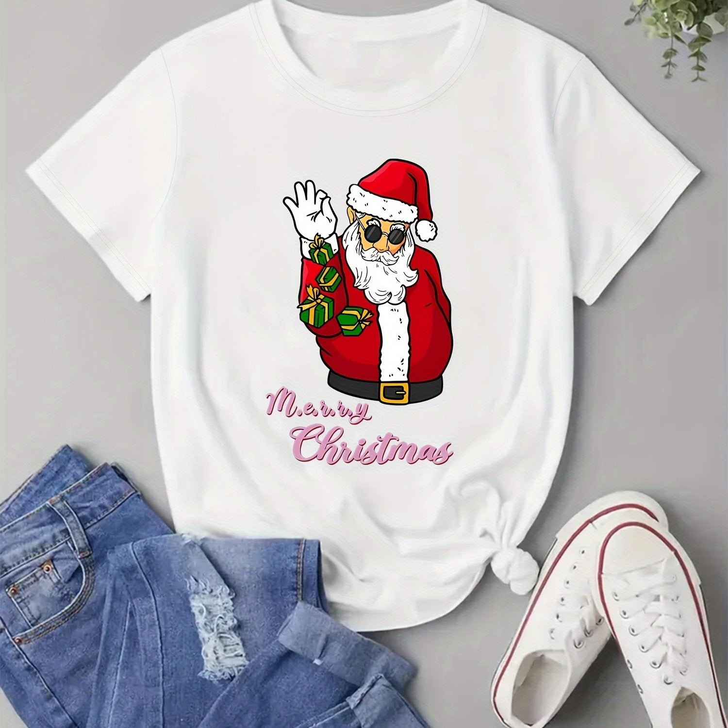 Festive Santa Claus Print T-shirt: Embrace the Christmas Spirit in Style!