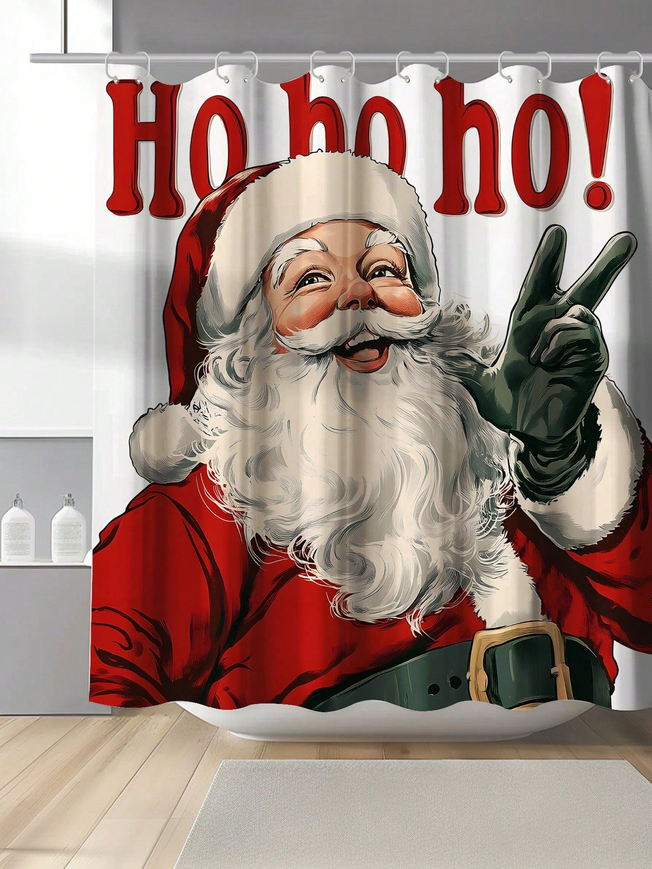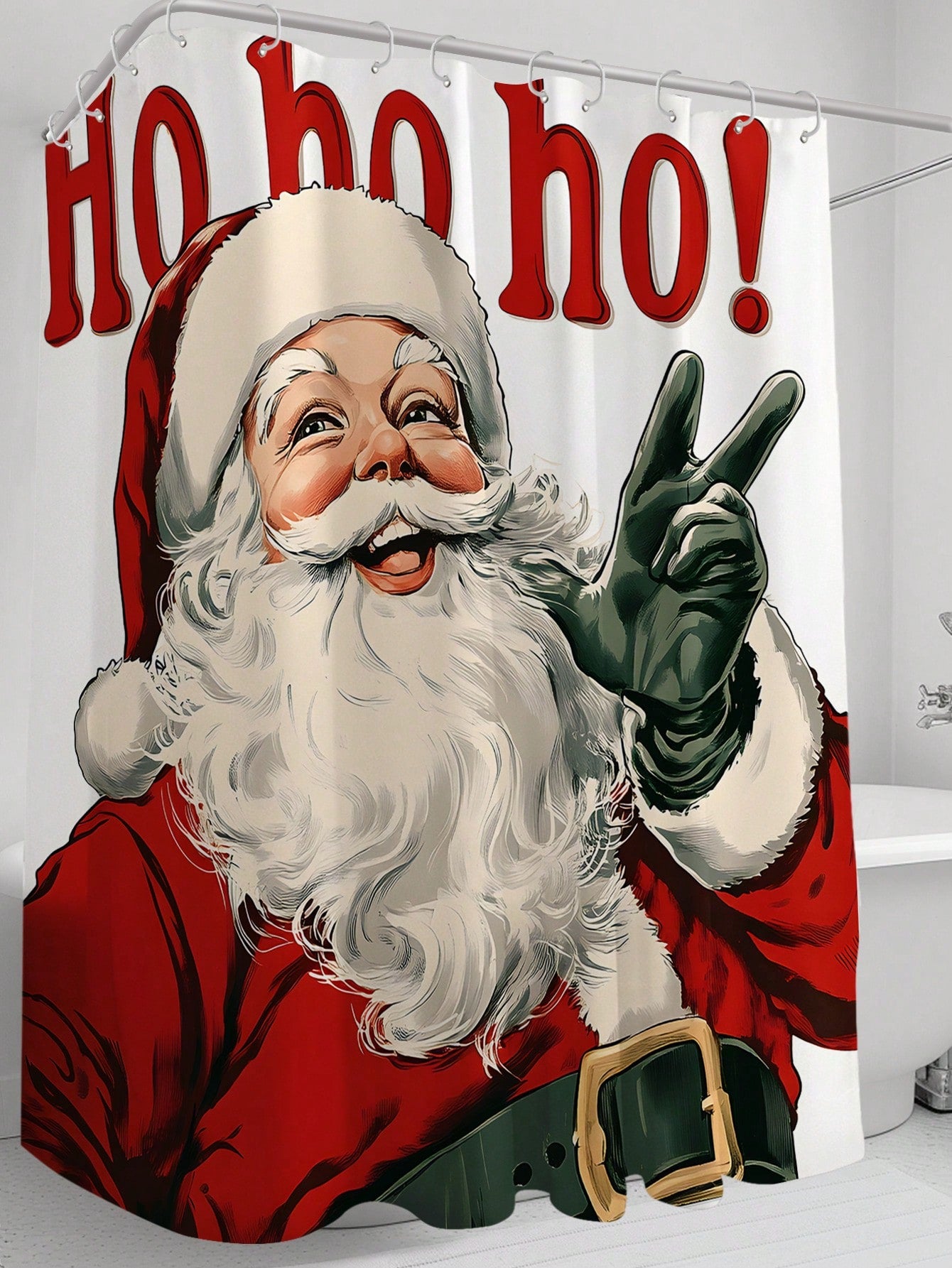 Festive Santa Claus Waterproof Shower Curtain - Durable and Mildew-Proof Christmas Bathroom Decor