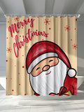 Festive Santa Claus Waterproof Shower Curtain with Hooks & Eyelets - Mildew Resistant Bathroom Decor